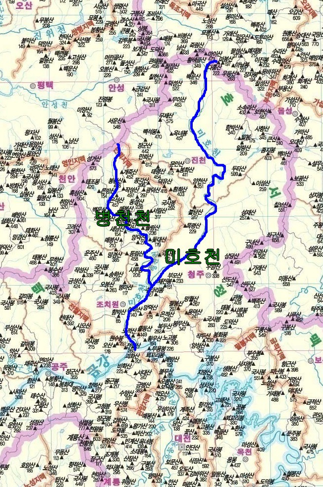 흥덕구 오송읍 쌍청리에서 미호천에 합류하여 비단 금강으로 흐르게 되는 강이다.
