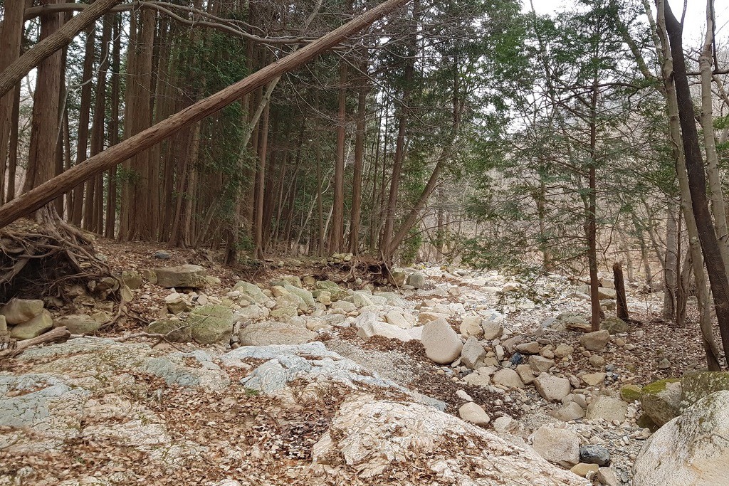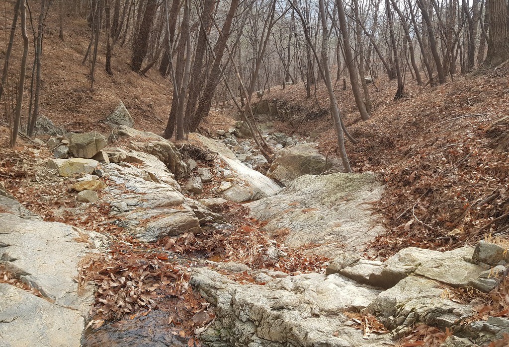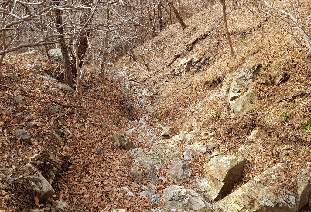 흐르던 물이 어느순간 사라지고 먼지만 폴폴 날것같은 계곡이 된다.