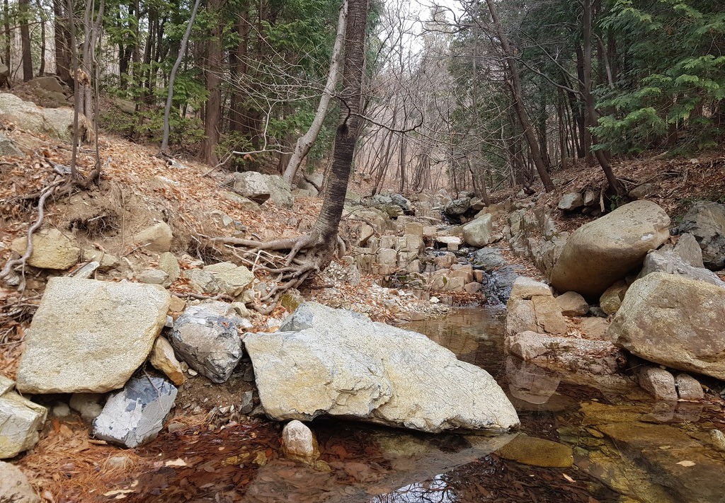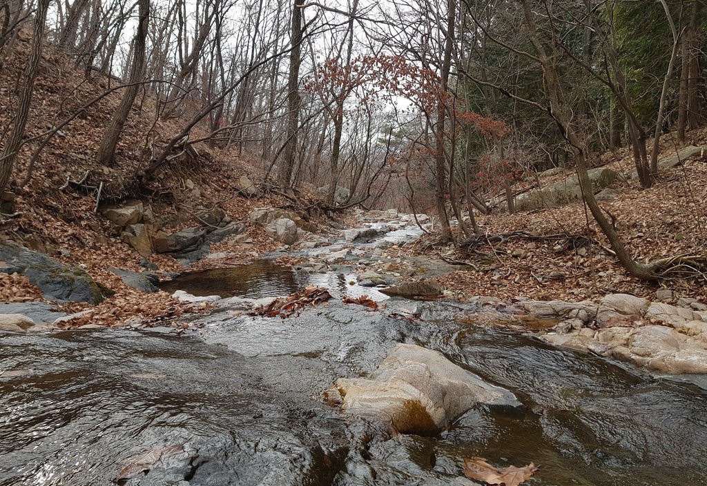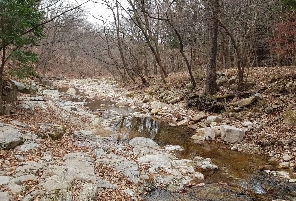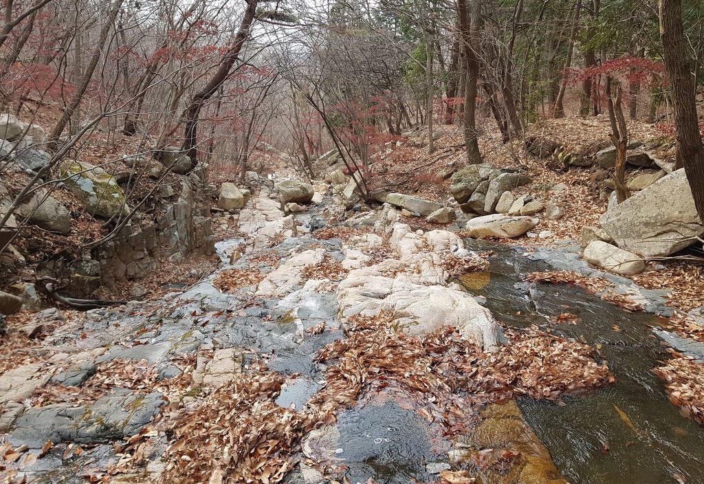 계곡으로 물이 없더니 한참 내려와서야 물을 만나게 된다.