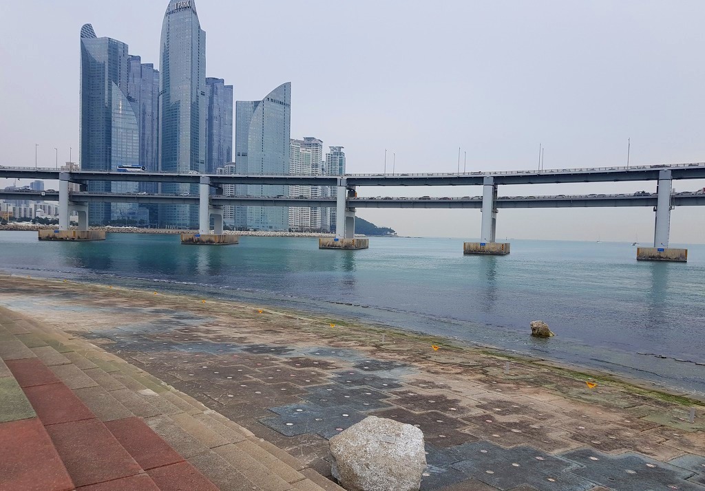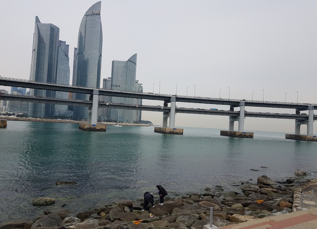 물은 흘러 오면서 깨끗한 모습이었으나 부산 시내를 지나며 하수구 냄새가 나더니 바다가 보이는 곳에서는