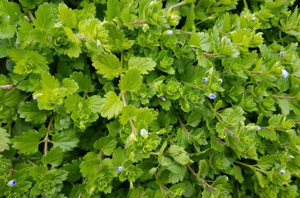 봄에 피는 개불알꽃이 논둑 아래로 한창 피어있고
