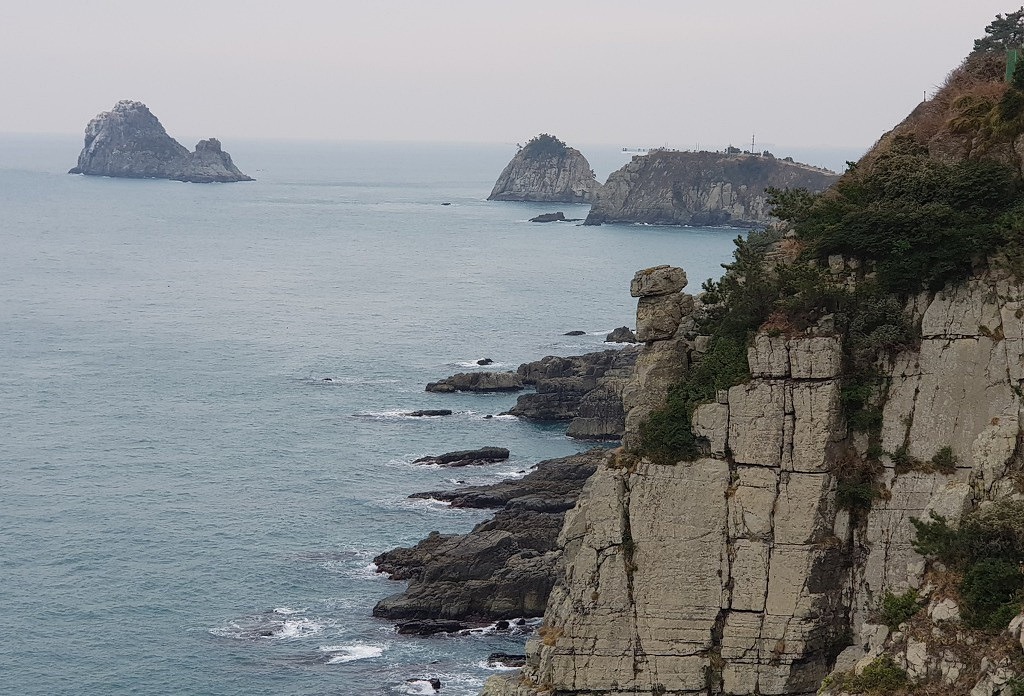 멀리 오륙도와 두명이 기생이 왜장을 안고 자결한 이기대가 보이죠