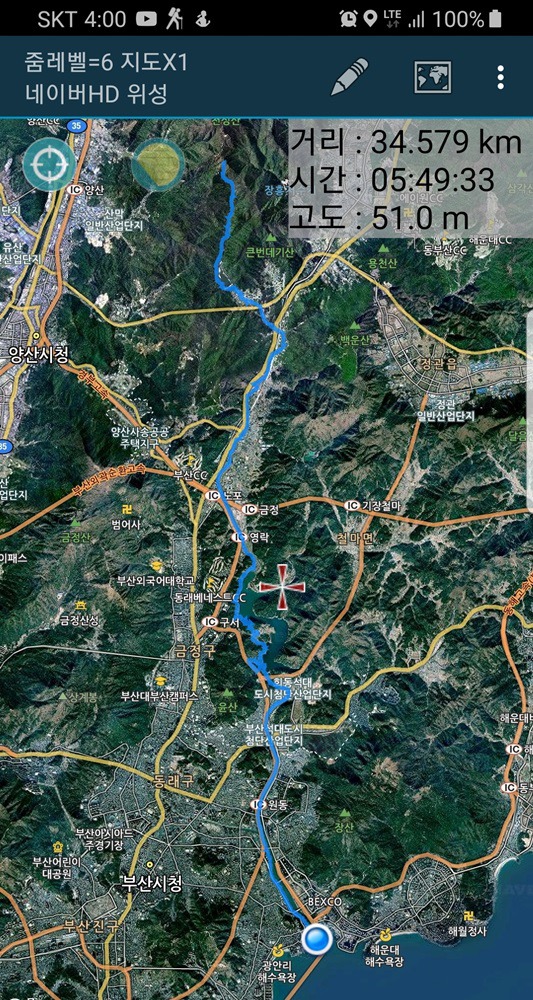 수영강이 가운데 흐르고 좌측 가장 높은곳은 장산이고 그넘어 동해바다와 남해바다가 분리되는 오륙도쯤 될것 같다
