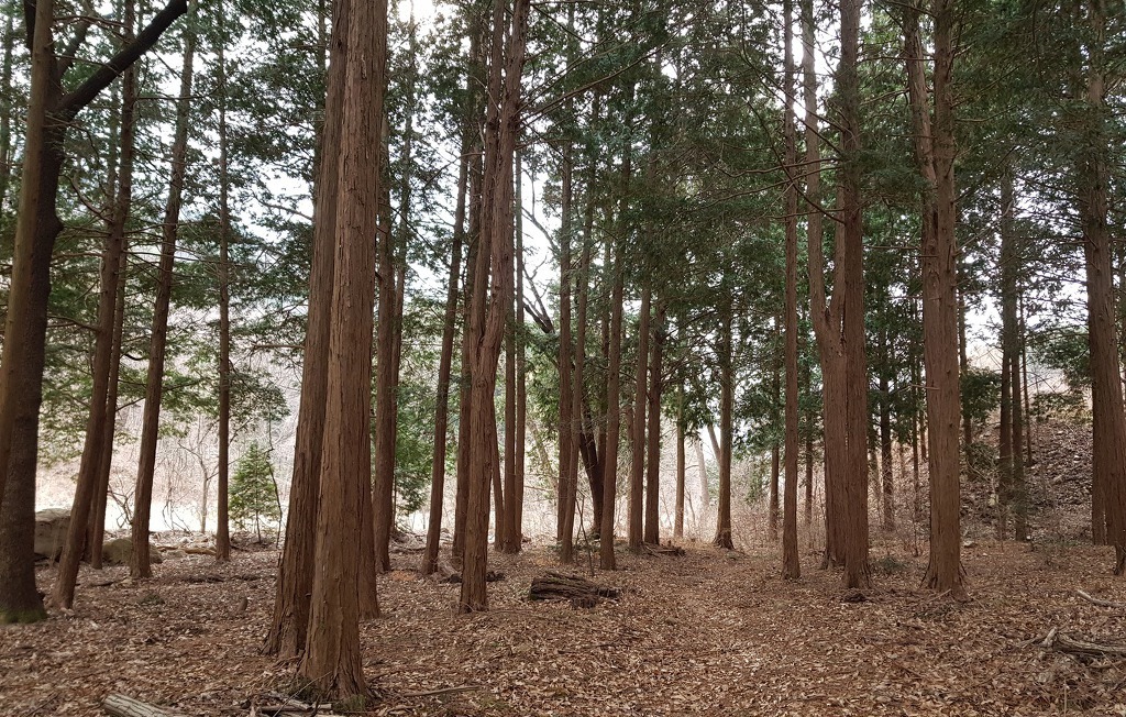 법기수원지 아래에 몇백년 넘은 가문비 나무가 줄비하게 서 있으며