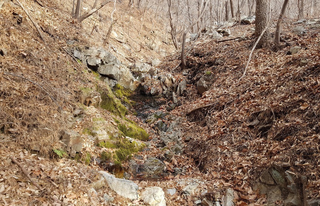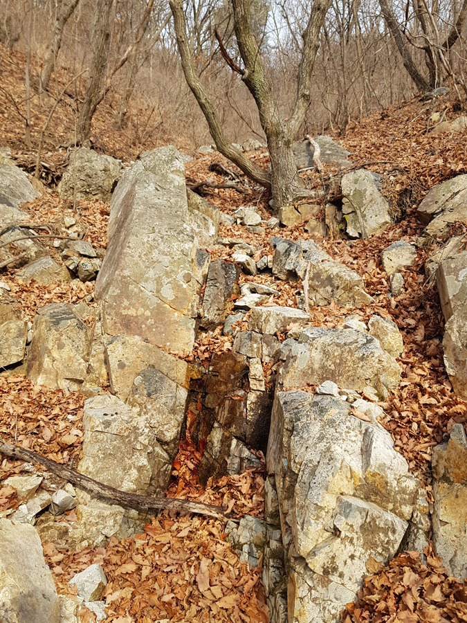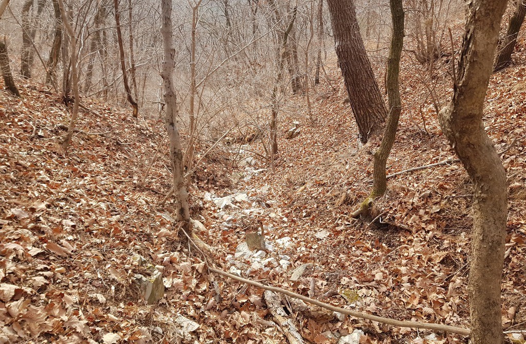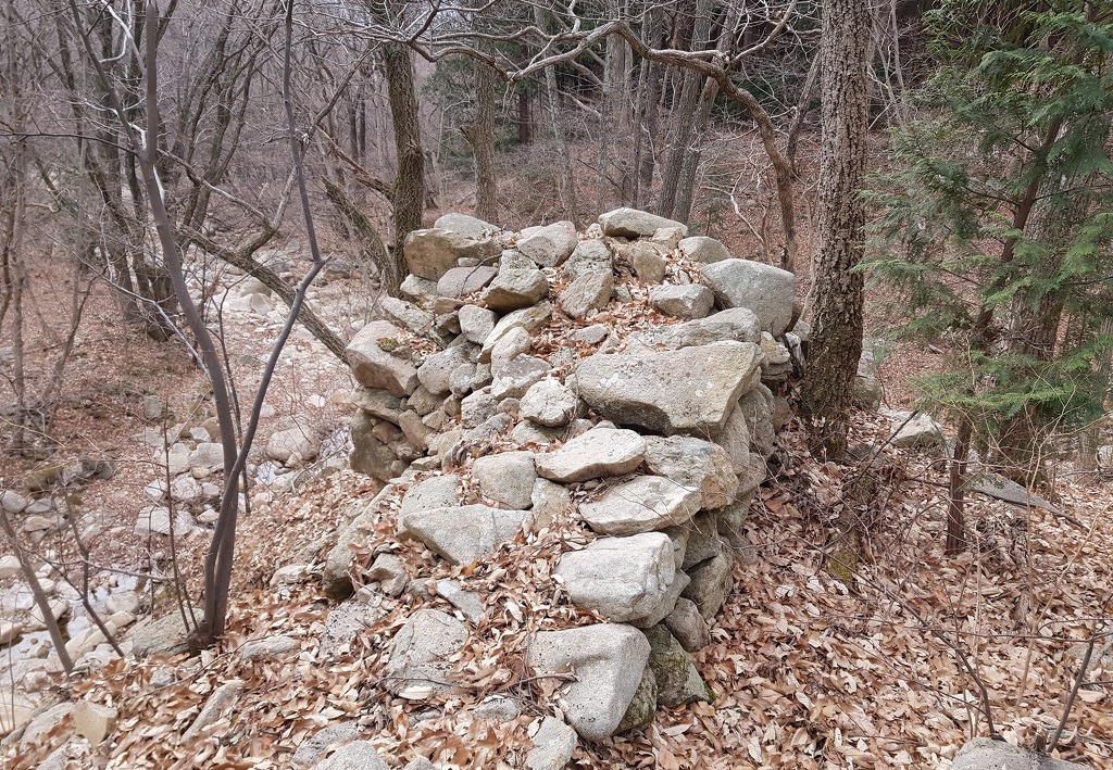 깊은 산중에 무슨 용도인지 알길없는 무너진 돌담이 있고