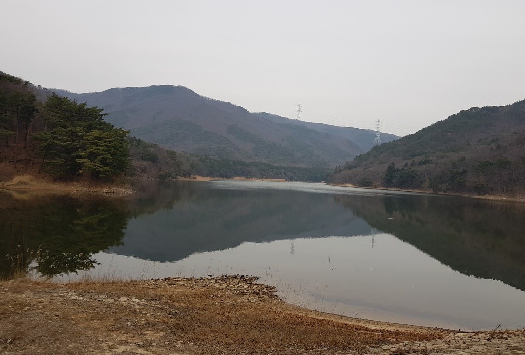 가운데 저수지는 내려 가야할 길에 만나게 되는 법기수원지로 깨끗한 곳이다.