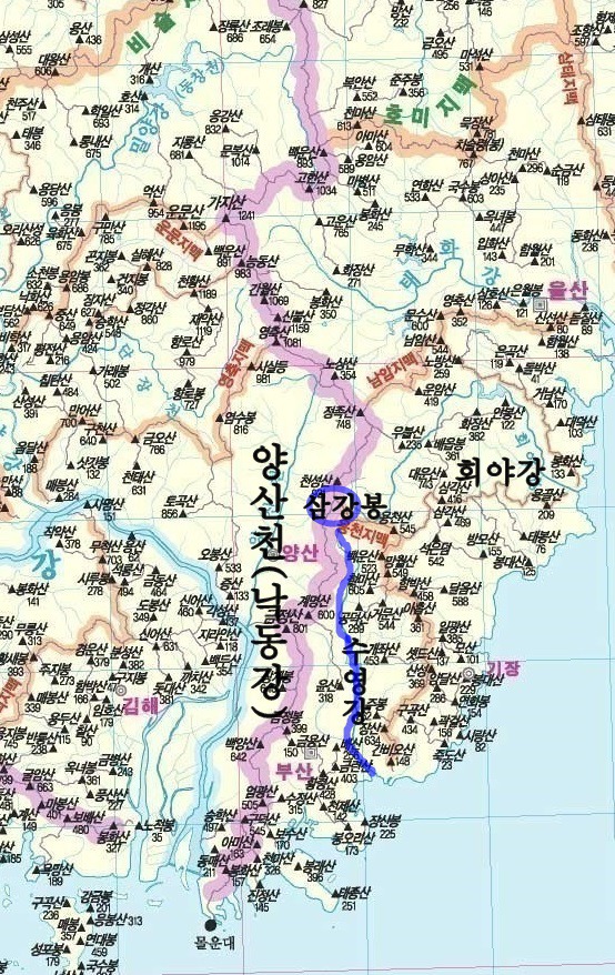 이곳은 낙동강,회야강,수영강이 분리되는 삼강봉(三江峰)인곳이다.