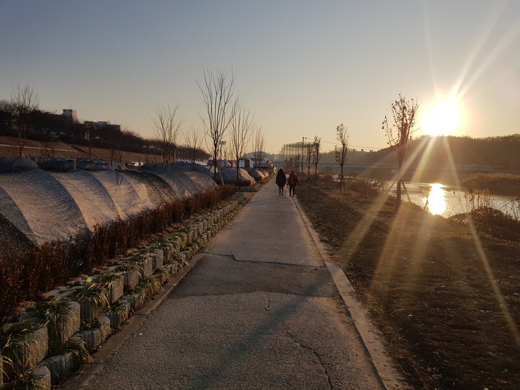 강가로 사람들이 많이나와 운동 하시는 모습도 보이고