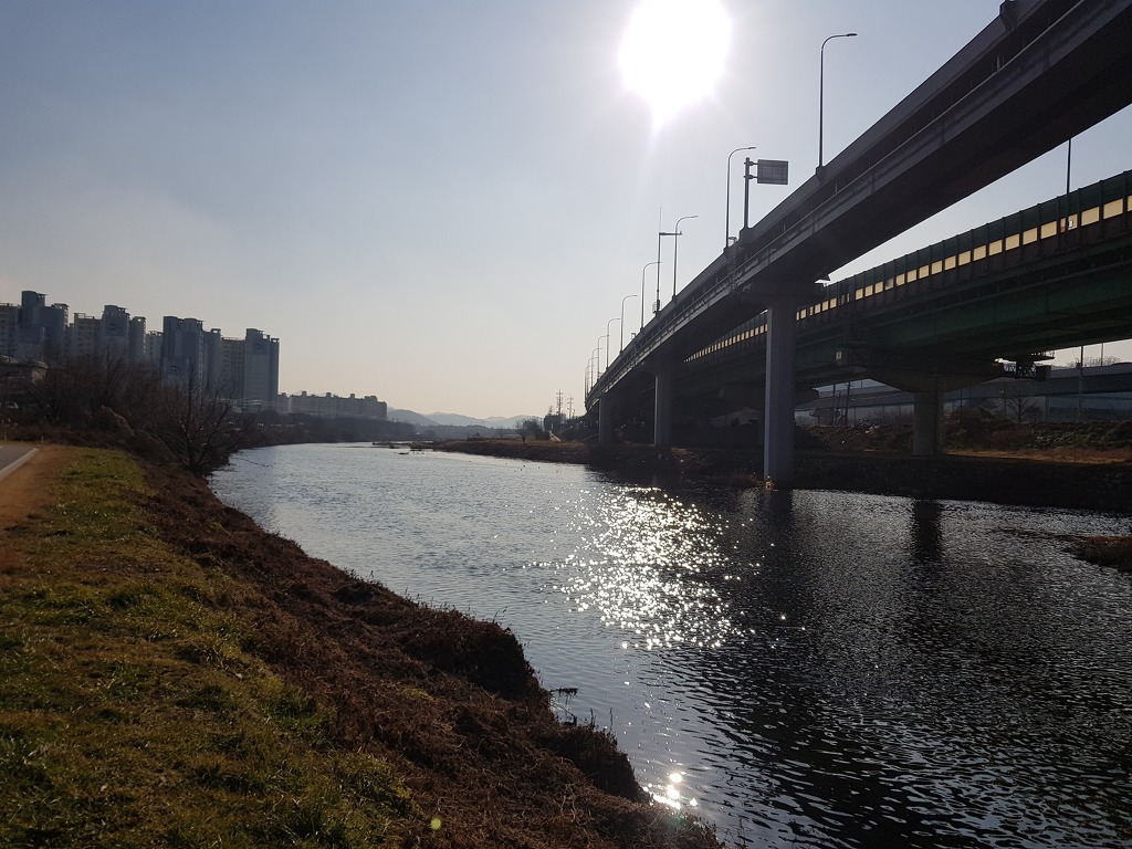 38km의 강이다.그리고 안양천은 도심을 지나기에 깨끗하거나 맑다고 말할 처지가 아니기에... 그저 그러려니한 강이다.