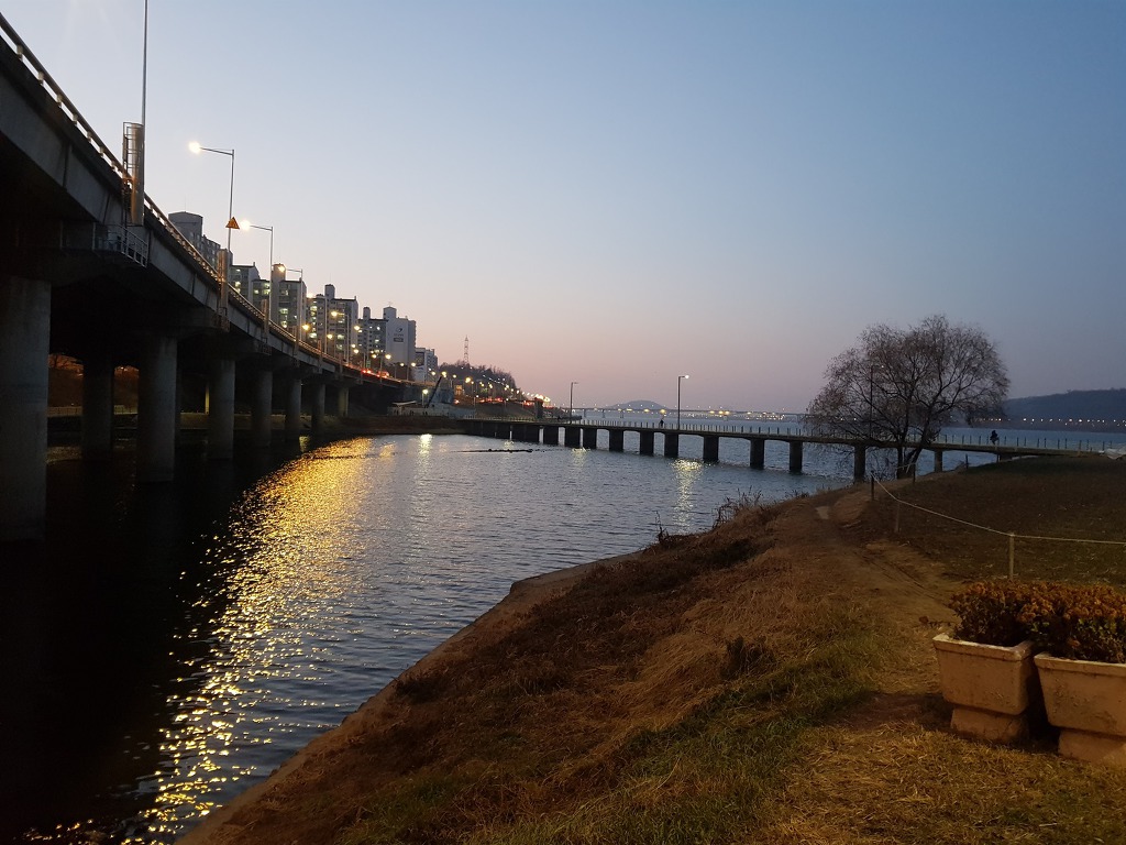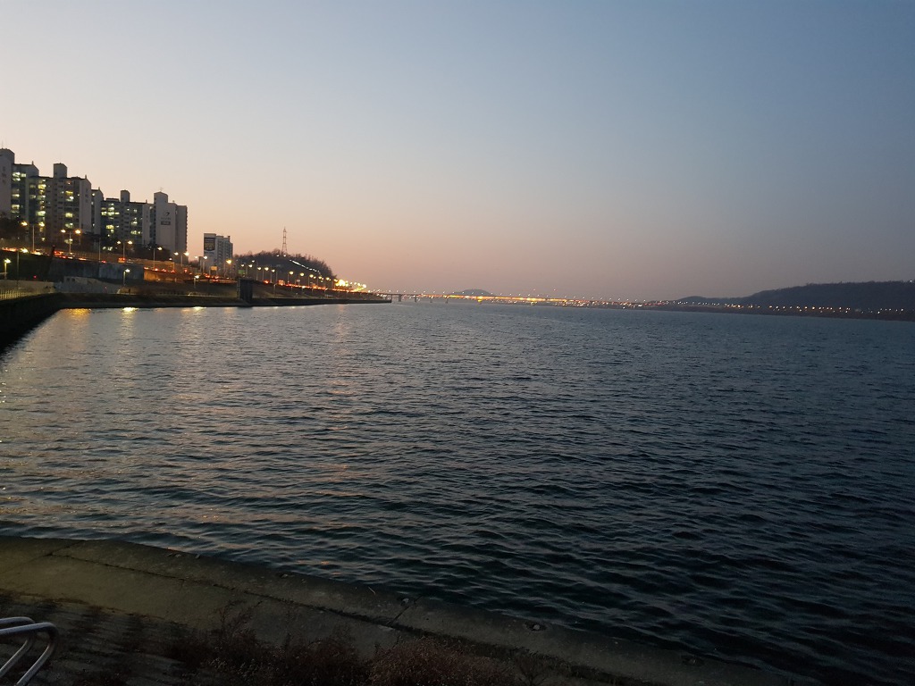 강가로 가로등 불빛이 하나,둘 들어올 무렵 강바람은 점차 자갑게 느껴지고