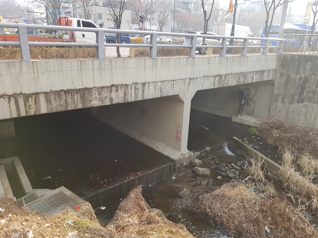 안양천이 복개천 아래로 지나다가 빠져 나오는곳
