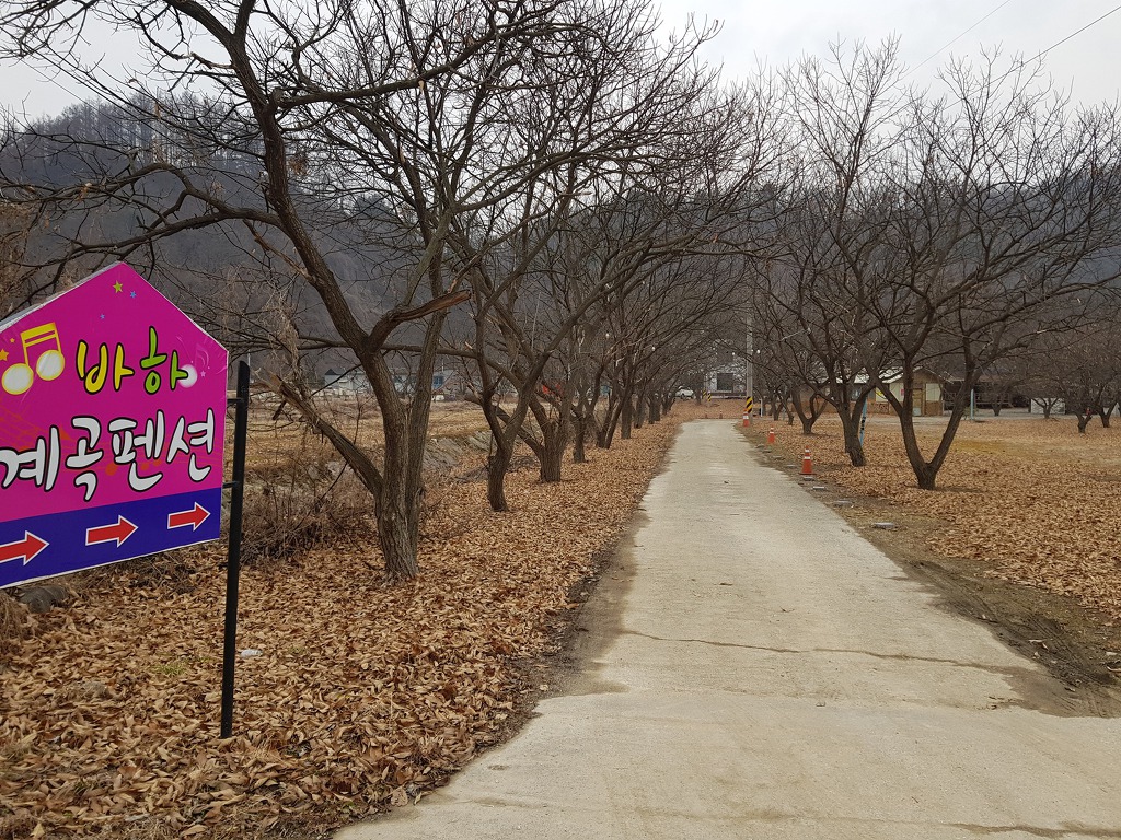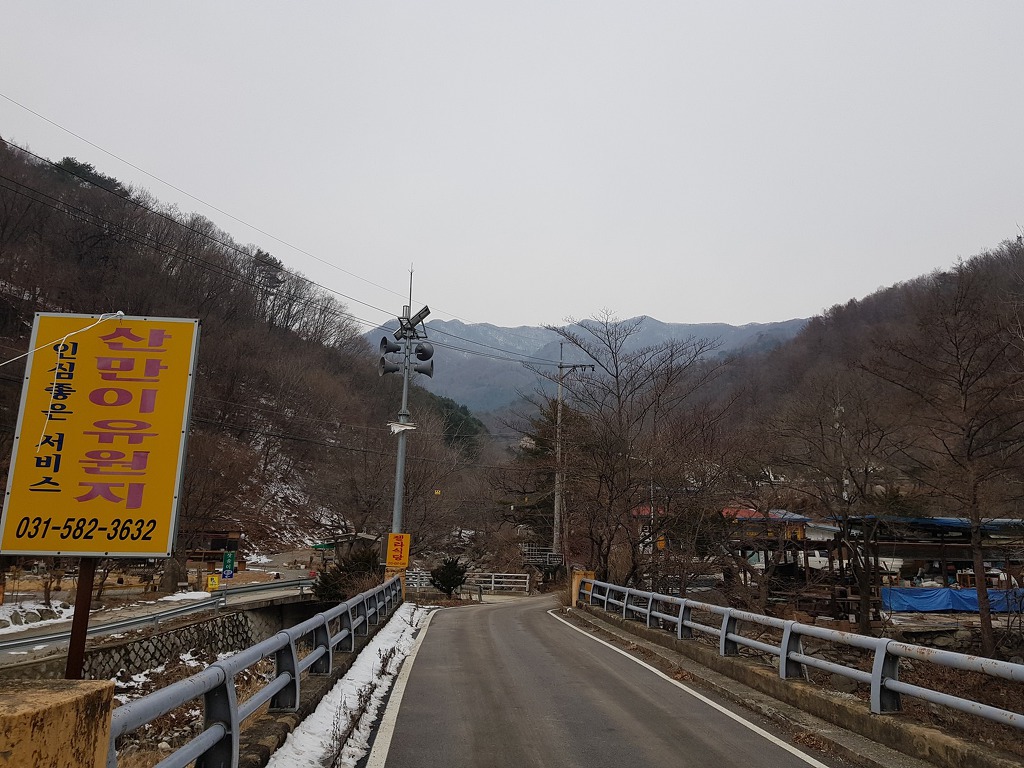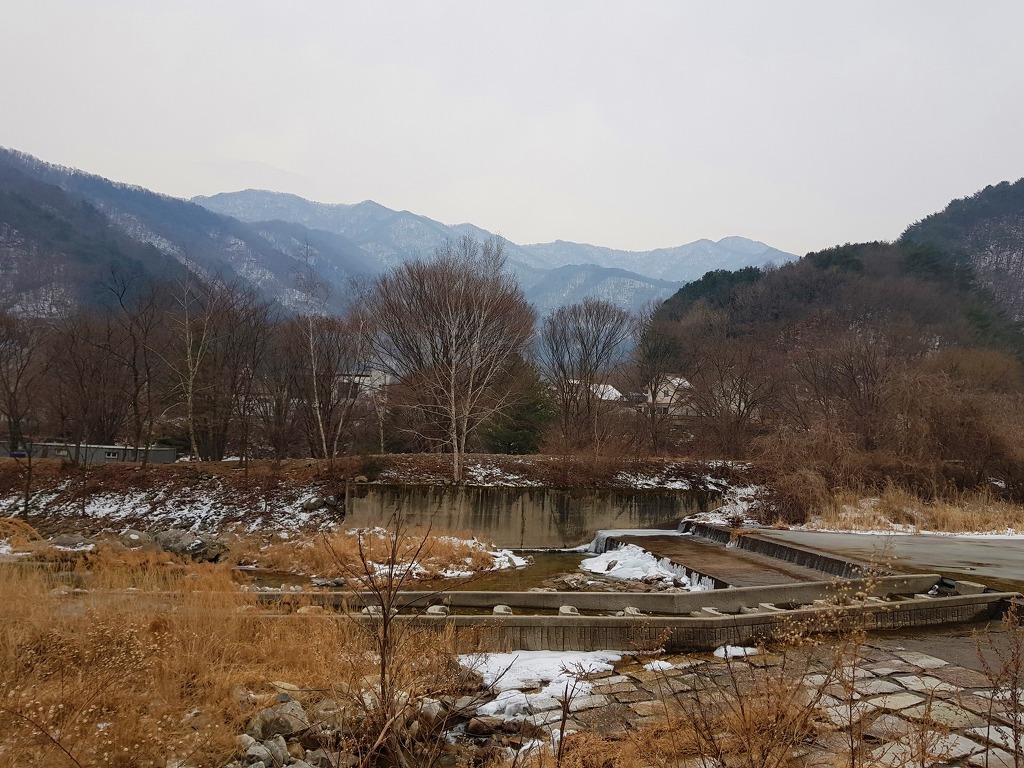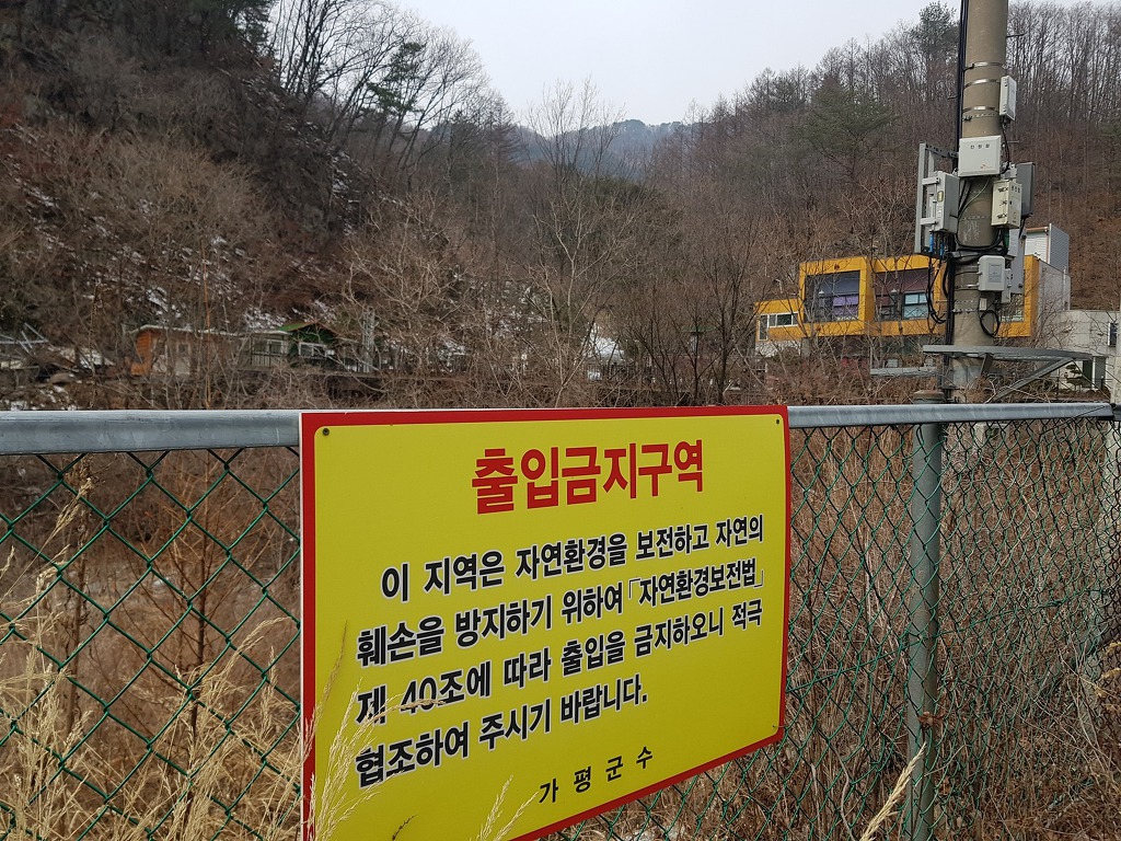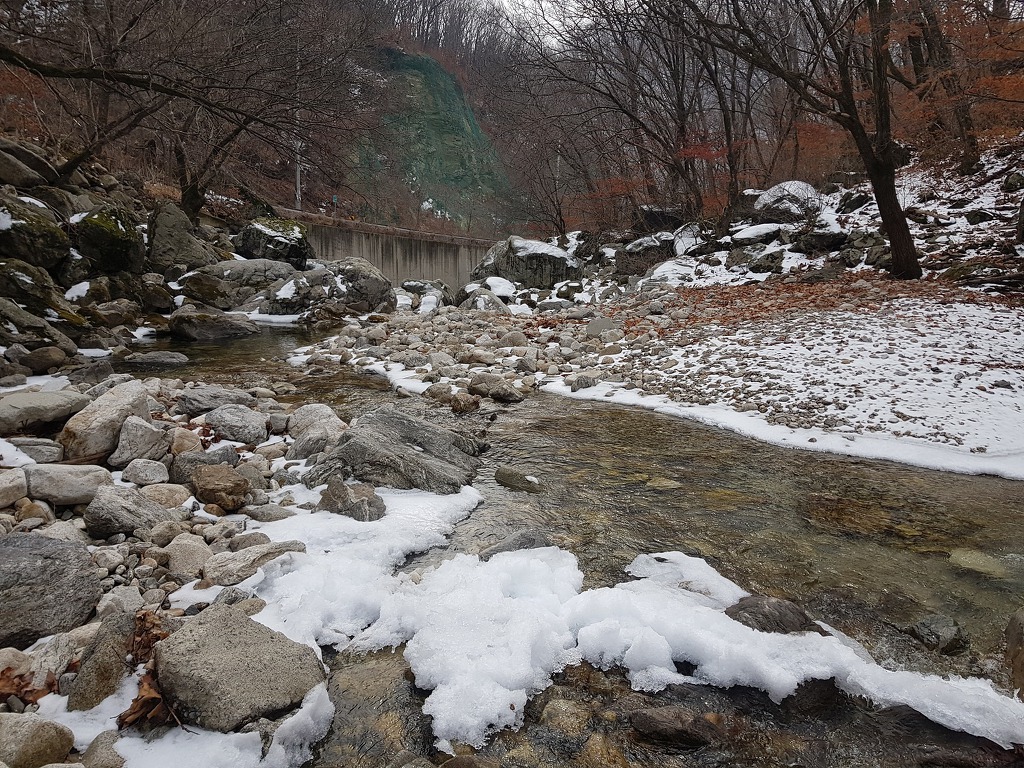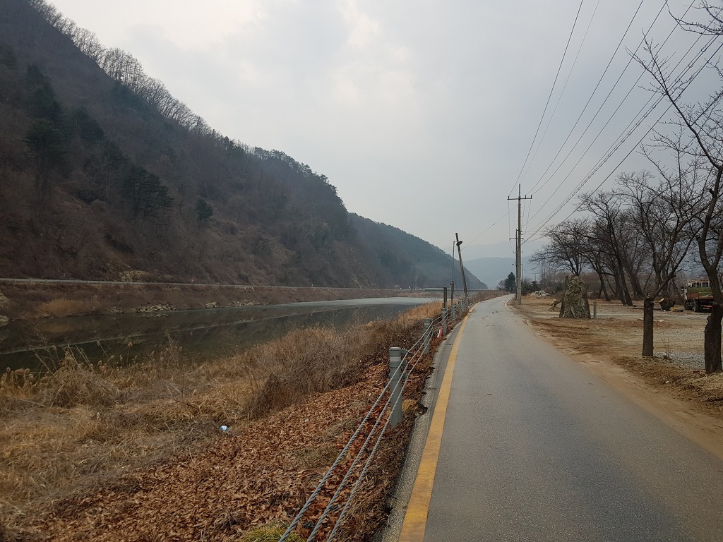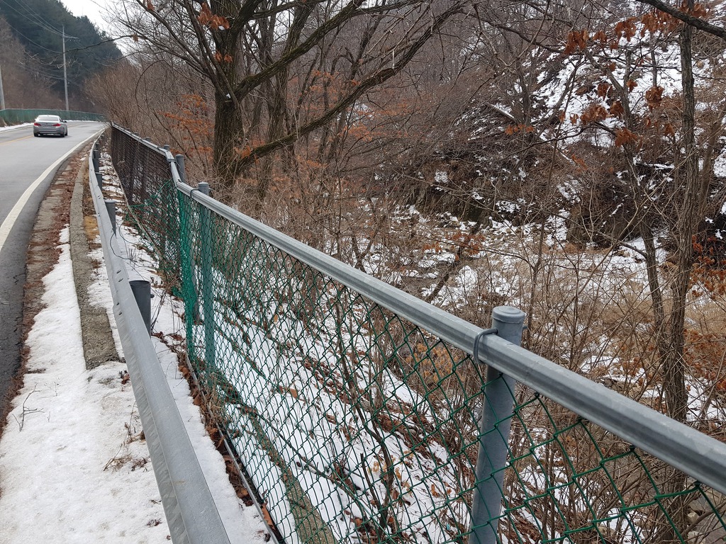 산 아래도로와 계곡으로 들어가지 말라며 끝을알 수 없는 철조망이 처져있어 물가로는 들어 가지 못하게 해두었다.