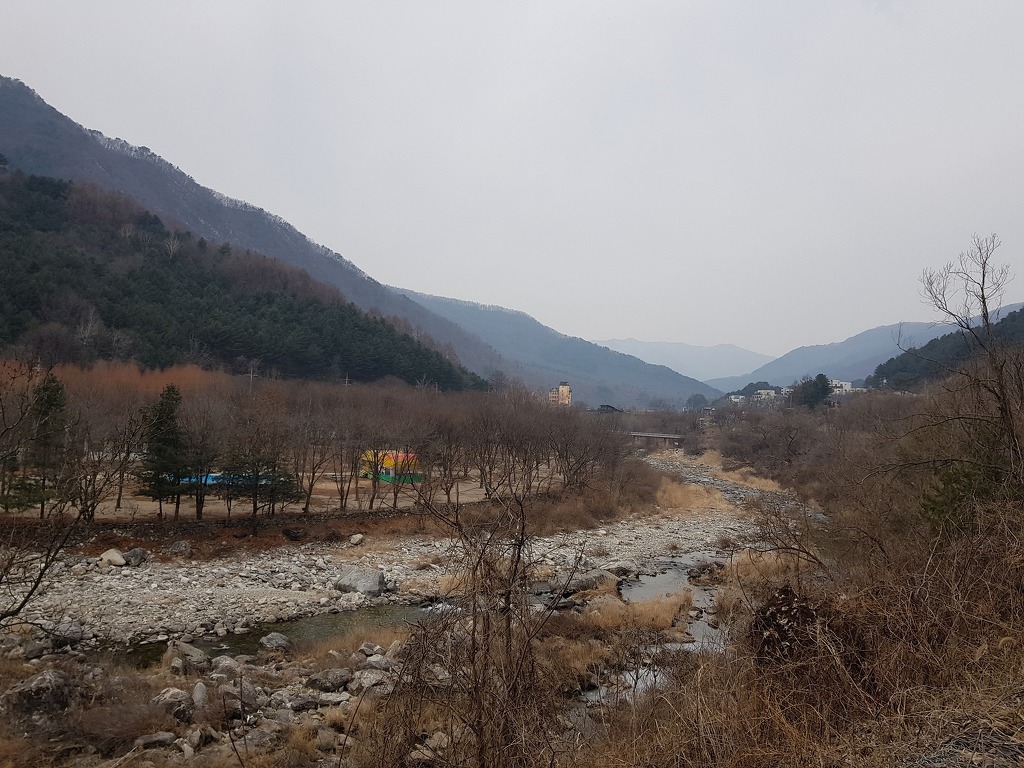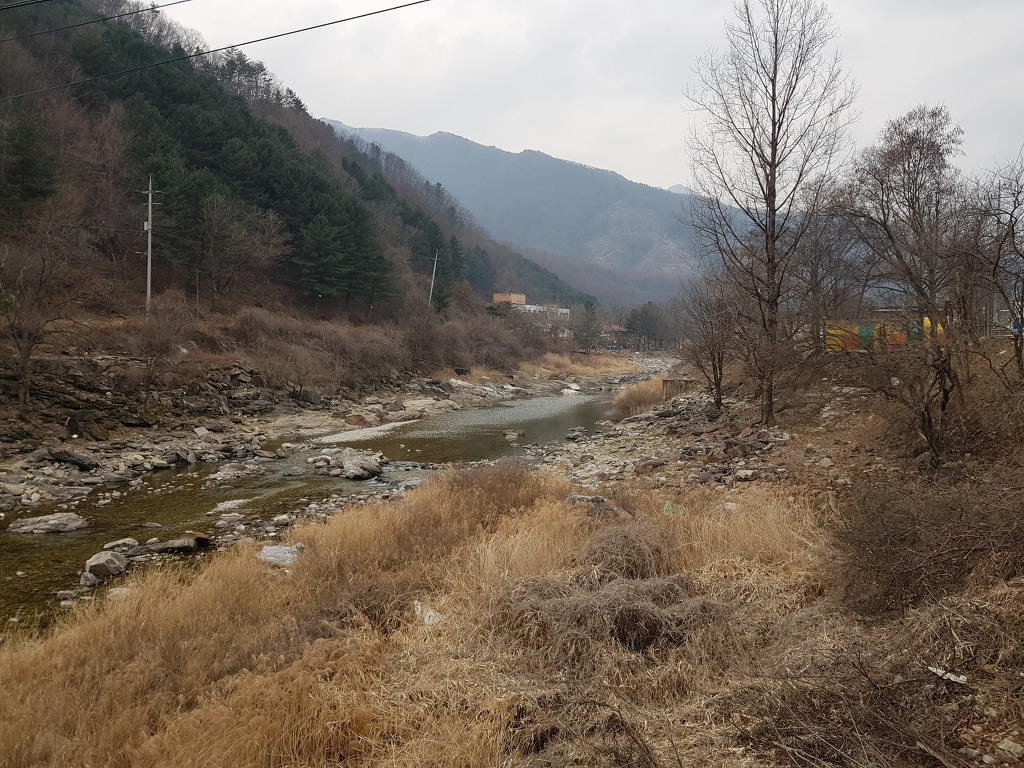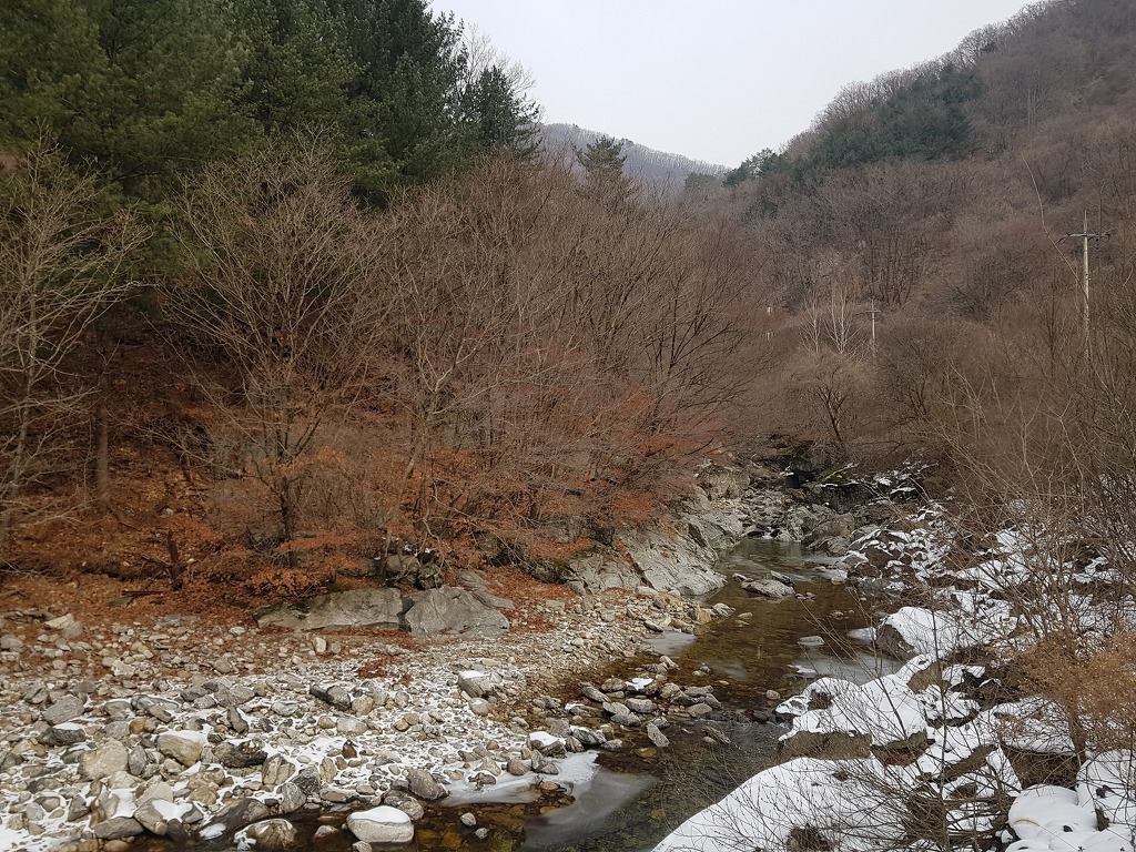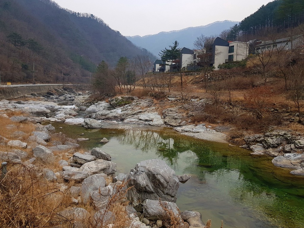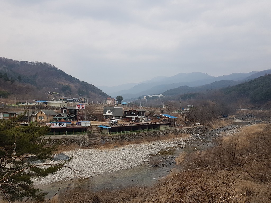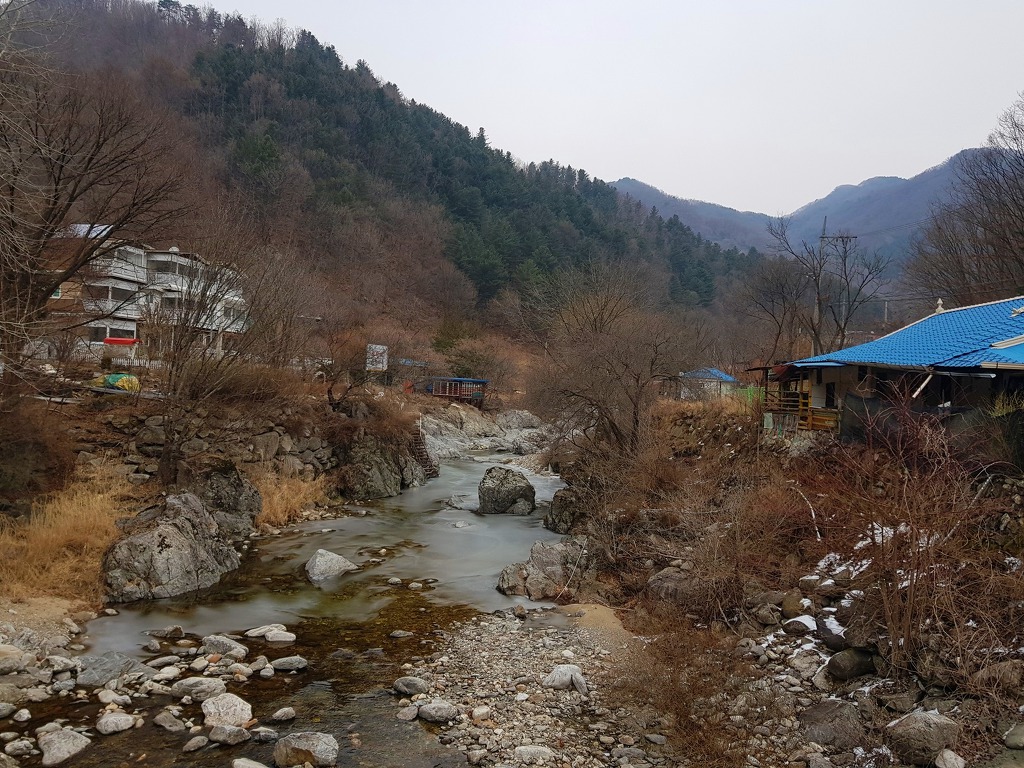계곡 맞은편으로 민가가 하나,둘 보이는데 저곳은 사람들이 사는 모양이다.