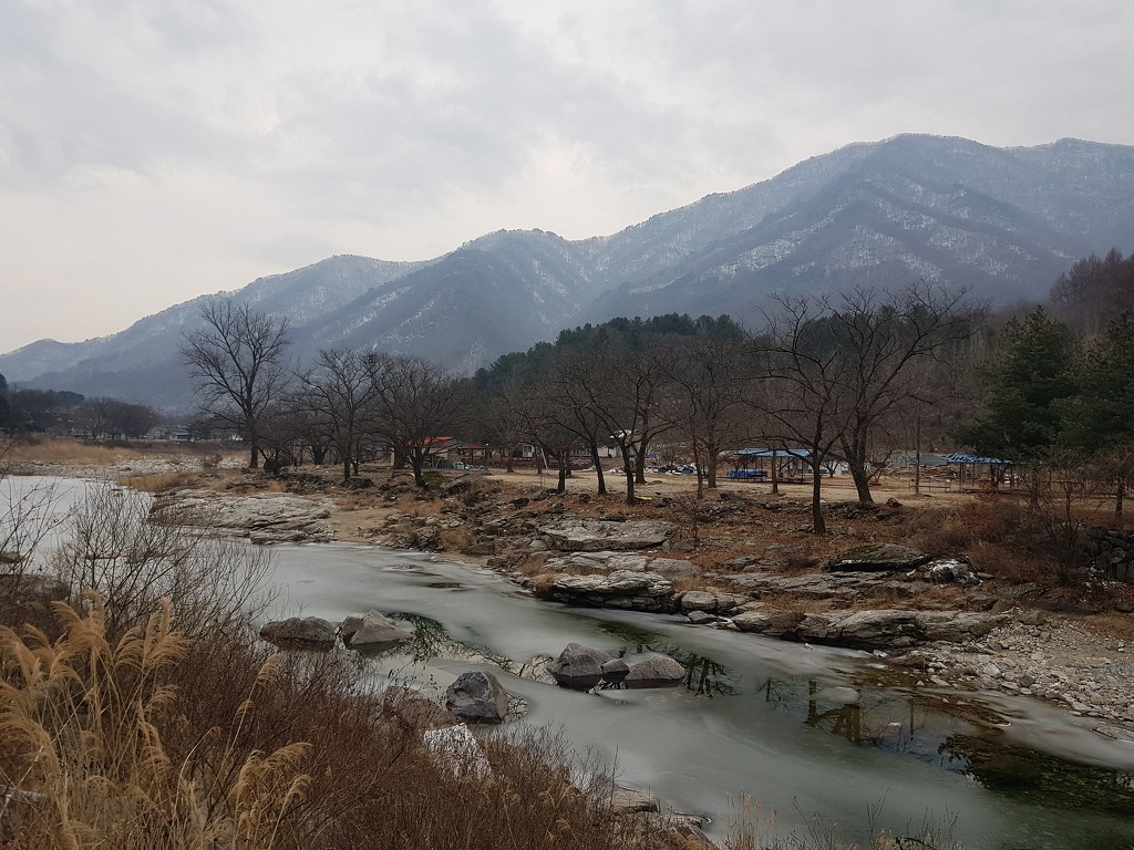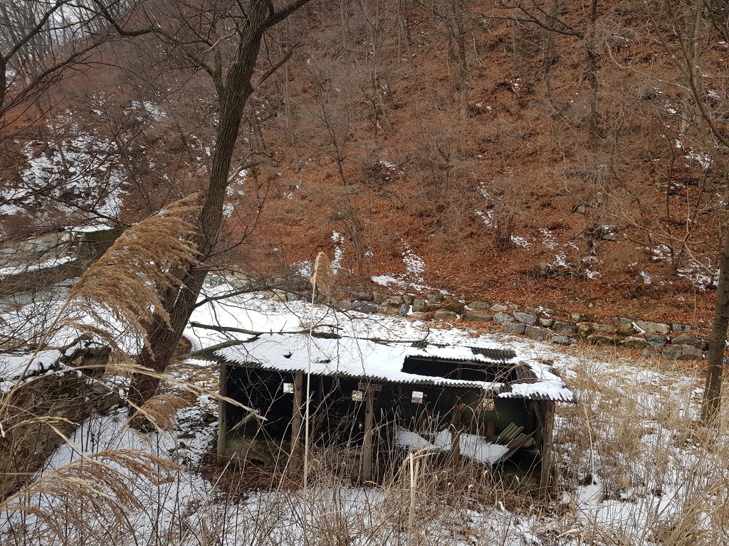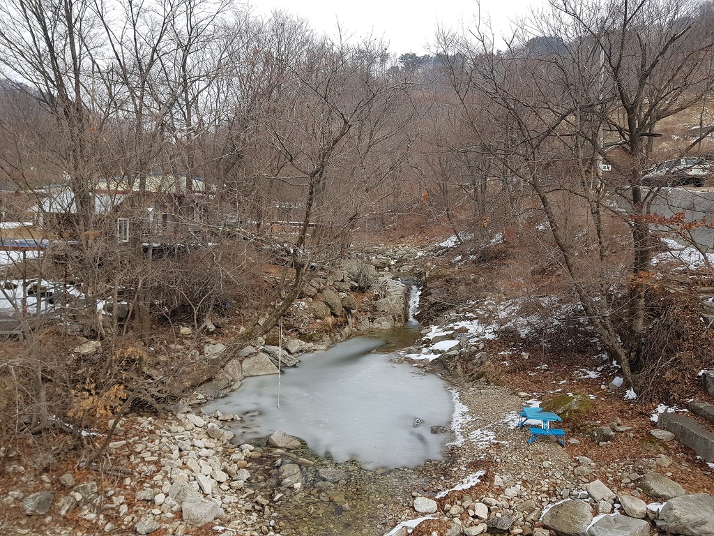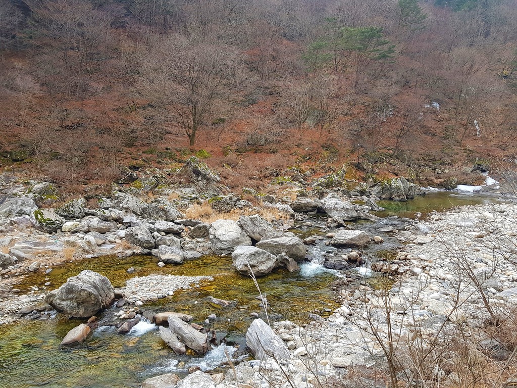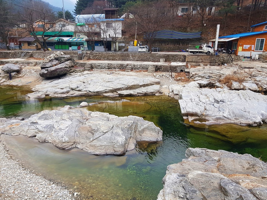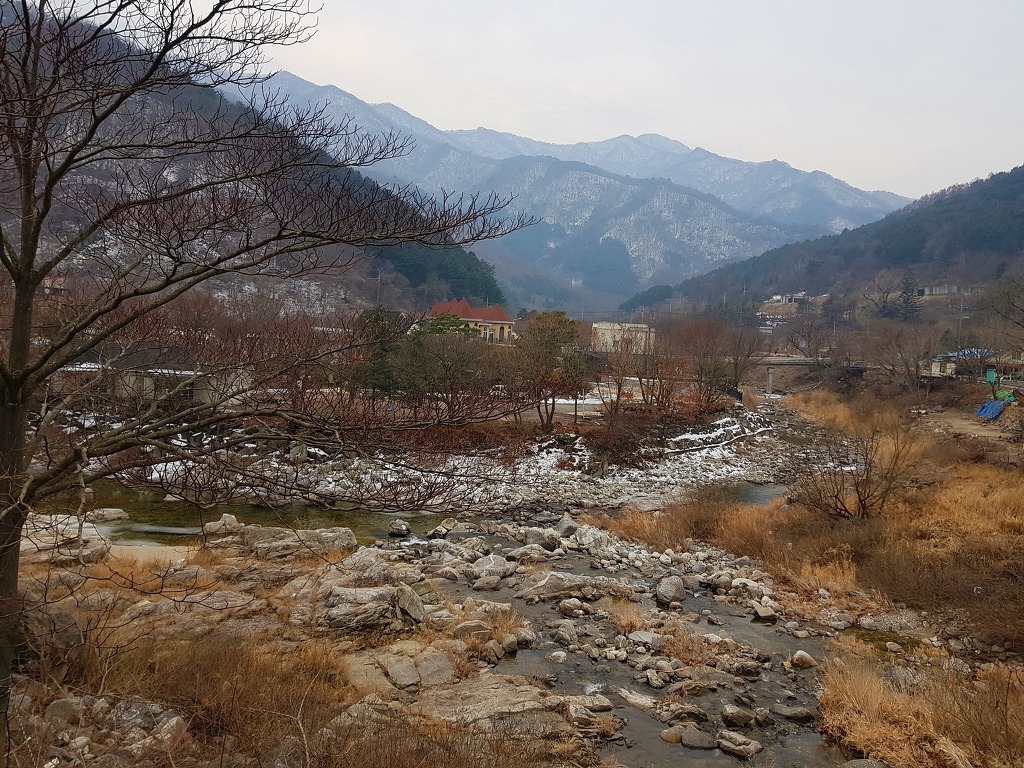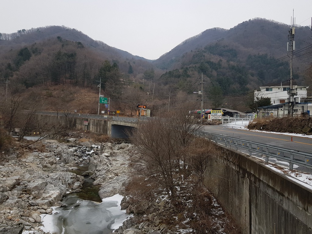 계곡 맞은편으로 민가가 하나,둘 보이는데 저곳은 사람들이 사는 모양이다.