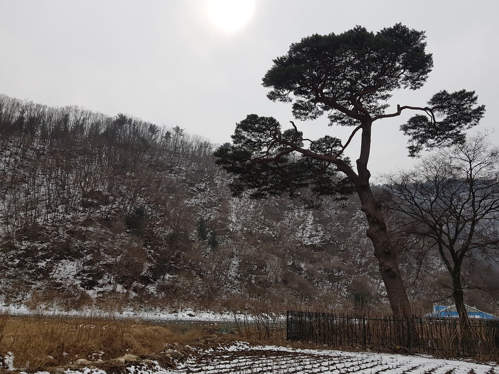 가북교 다리를 건너 가평군 개곡리를 지날즘에 만나게 되는 소나무