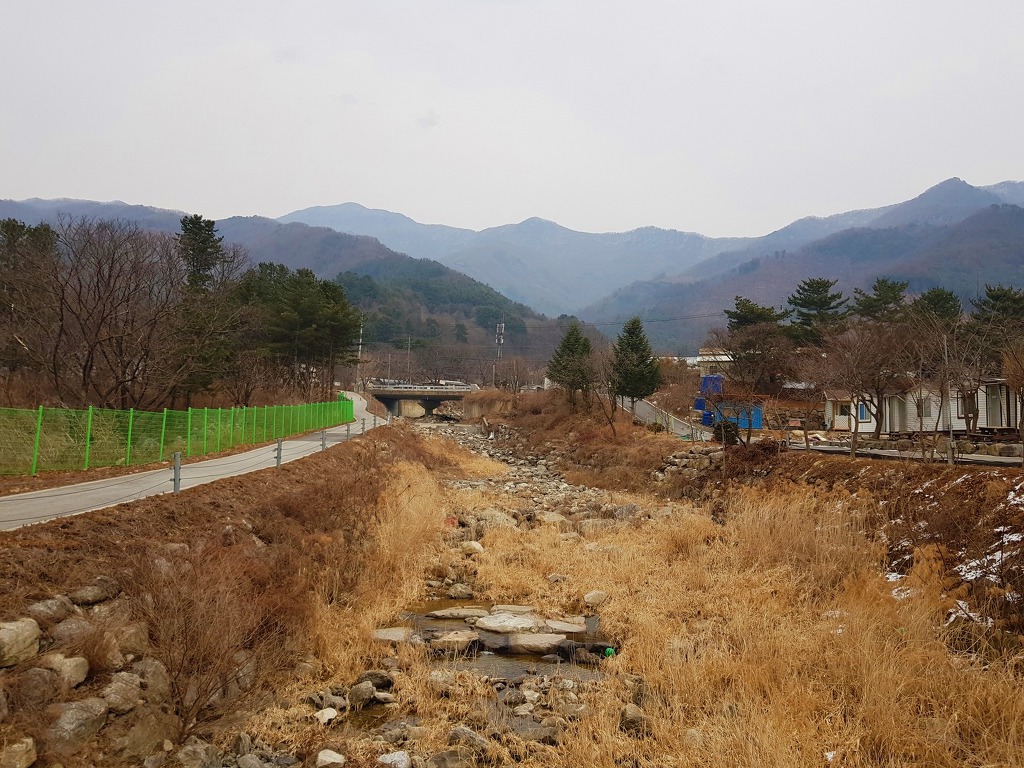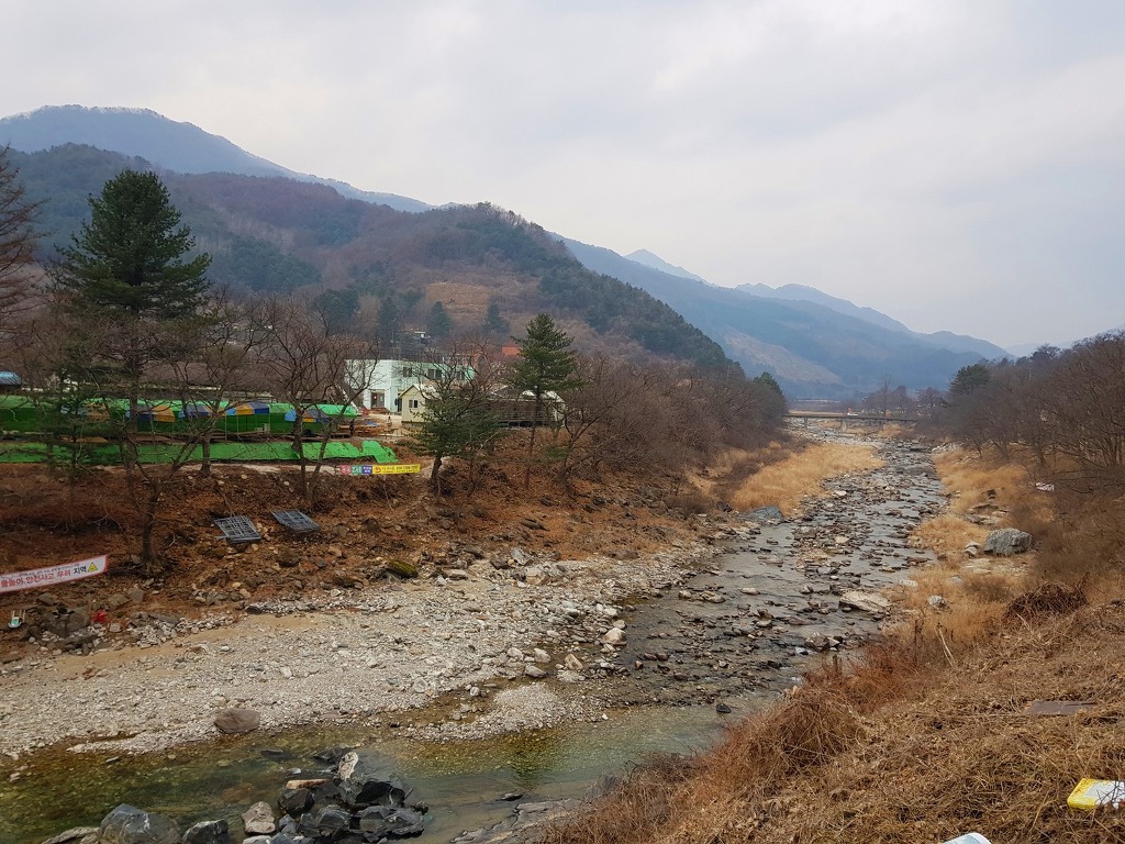 그리고 아래로 흐르는 동안 처음처럼 맑을 수 없지만 평지가 속한 강보다 상대적으로 깨끗하나 한여름에는 펜션때문에 몸살을 앓는 곳이다.