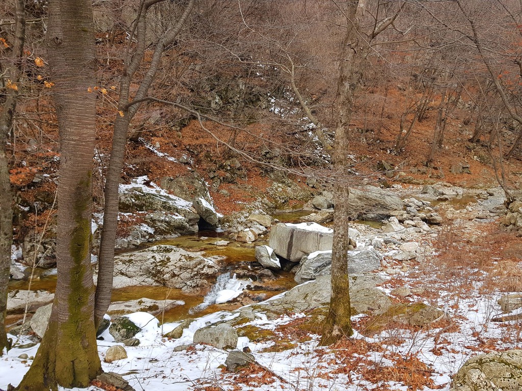 눈이 쌓여 있지만 아이젠이나 스패츠가 없으니 ...될데로 되라며 분격적인 물길 여행에 나선다