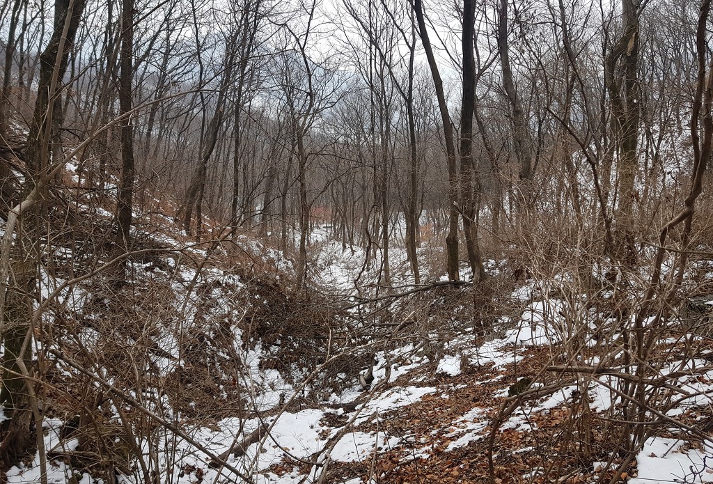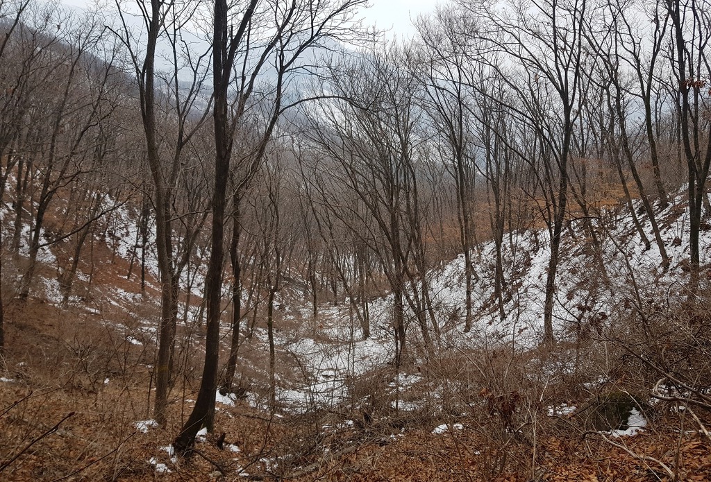도마봉에서 남쪽으로 무작정 내려오면 양지쪽은 눈(雪)이 없으나 낙엽이 모두 젖어 신발이 금방 축축해 진다.
