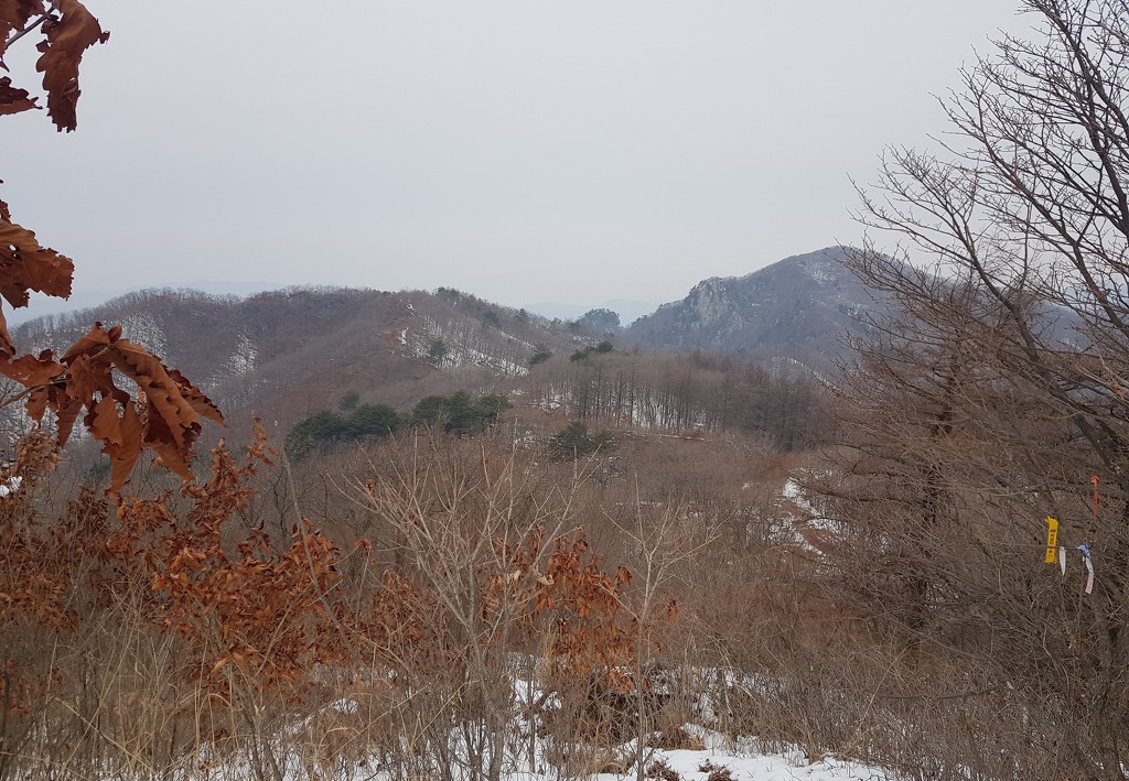 멀리 명지산이 보이고 가운데 계곡은 명지계곡