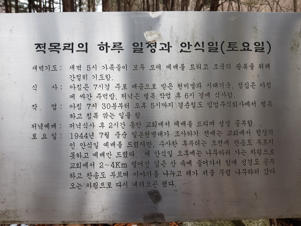 일제 감정기때 신사참배와 창씨개명 그리고 종교탄압과 강제징용을 피해 모여든 주민들이 이곳에서 은신하며 신앙심을 키우던 유적지