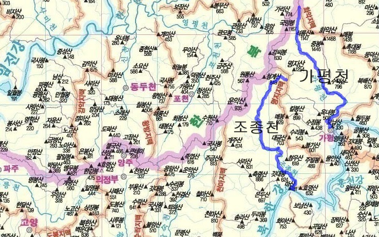한강 북쪽으로 흐르는 강은 우리가 갈 수 있는곳인 소양강,가평천,조종천이 있으며 그외 수많은 지류들이 북한강에 합류한다.