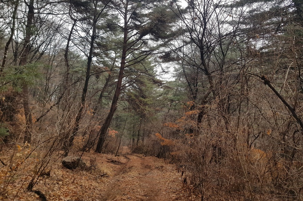언제나 그렇듯 빗물 꼭지점부터 아래로 지나는데 낙엽이 무성하고 안개와 젖은 낙엽에 신발은 금새 축축해져 온다.