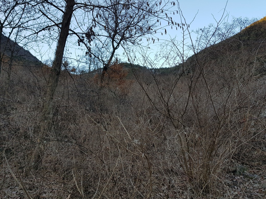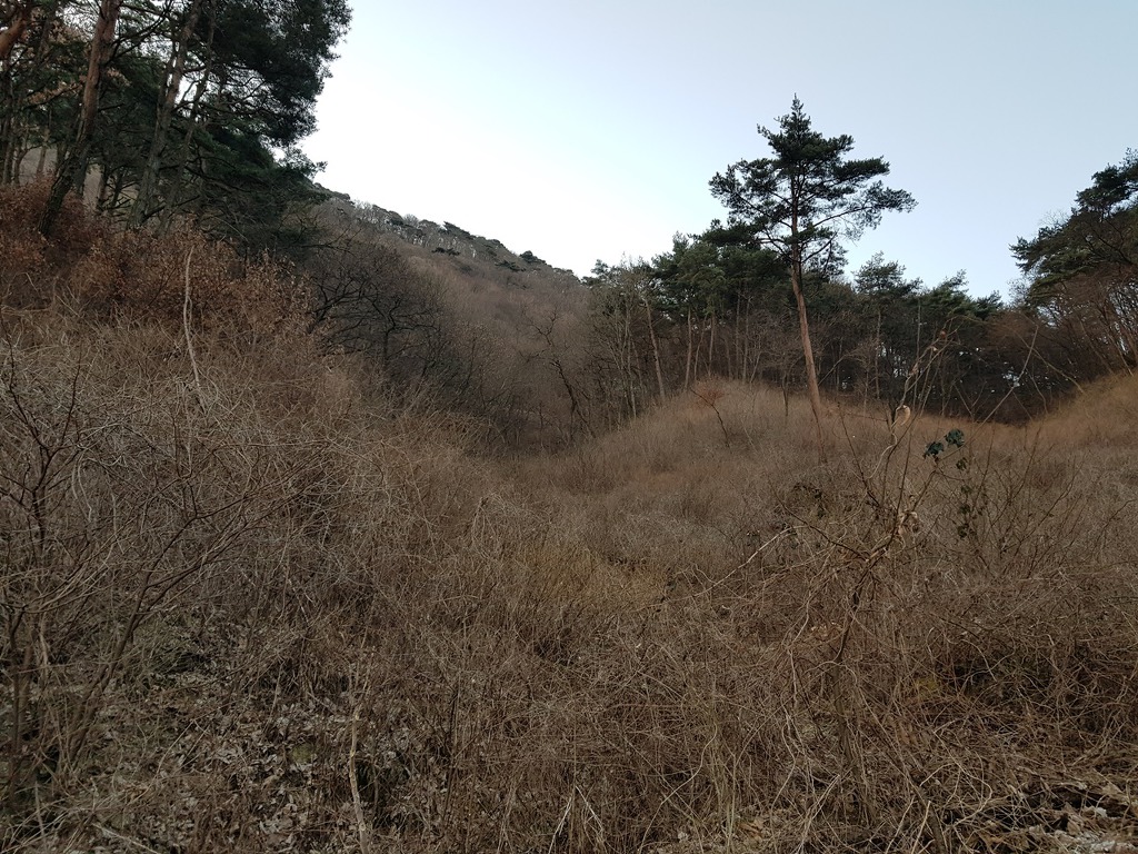 뚫고 가기가 힘들고 좌,우측 모두 덩쿨과 가시나무 군락지가 엉켜 엉망이다.