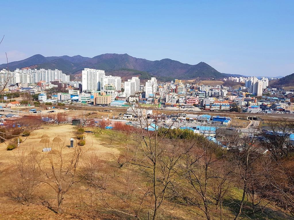 멀리 예산읍 뒷산인 관모산과 덕봉산 도고산