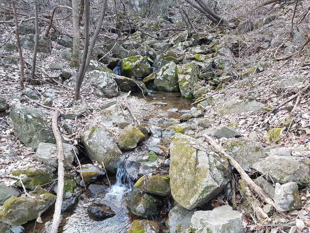 나뭇가지 사이로 구경 할건 다 했으니 오늘은 어떤 물이 기다리는지 정맥길 바로 옆 계곡으로 무작정 내려가면