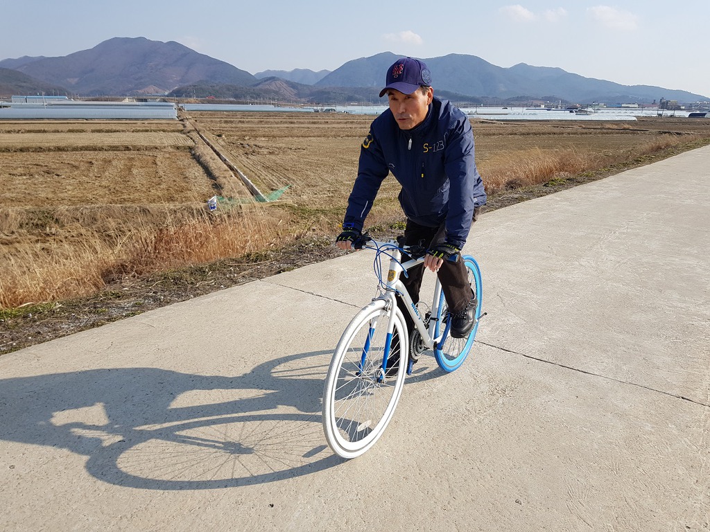 자전거 타고 쌩 가시고 저는 죽어라 뛰어 다니고
