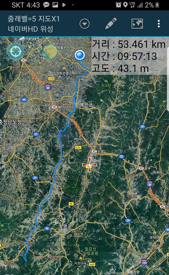 예당 저수지 가운데 조그많게 보이는 산은 예산의 관모산 인듯한데 조금 더 가봐야