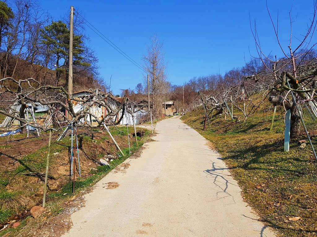산성산으로 오르는길에 포곡식 성터인데 온통 사과나무만 줄비하고 주인은 어딜 가셨나 크지도 않은 조그만 똥강아지 두마리가 사납게 짖는다. 산성 주변으로 예산군에서 관리를 전혀 안하는지 성터 흔적이라고는 보이지 않고 잡목과 잡풀 그리고 사과나무만 줄지어 서있다 삼국시대때 이런 풍경이었다면 이곳 성을 지키는 군졸들이 사과 밭 관리하며 재미나게 지켰을듯