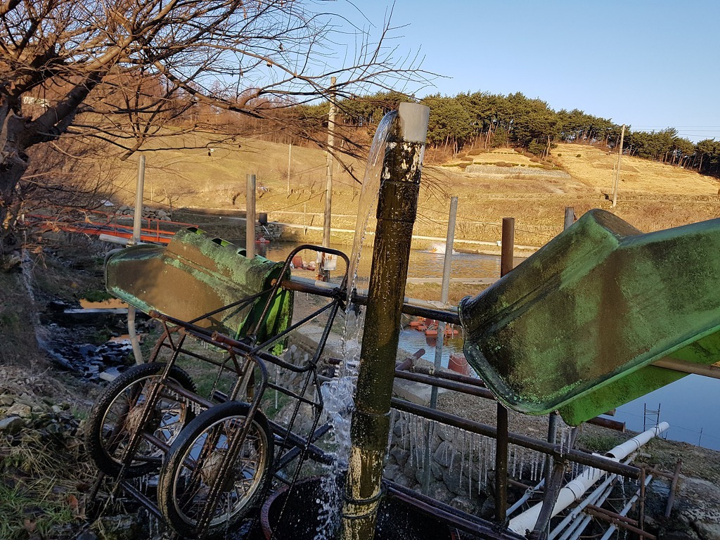 추운날씨 얼음이 꽁꽁 홀닥벗은 리어카가 너무 추워 보인다.