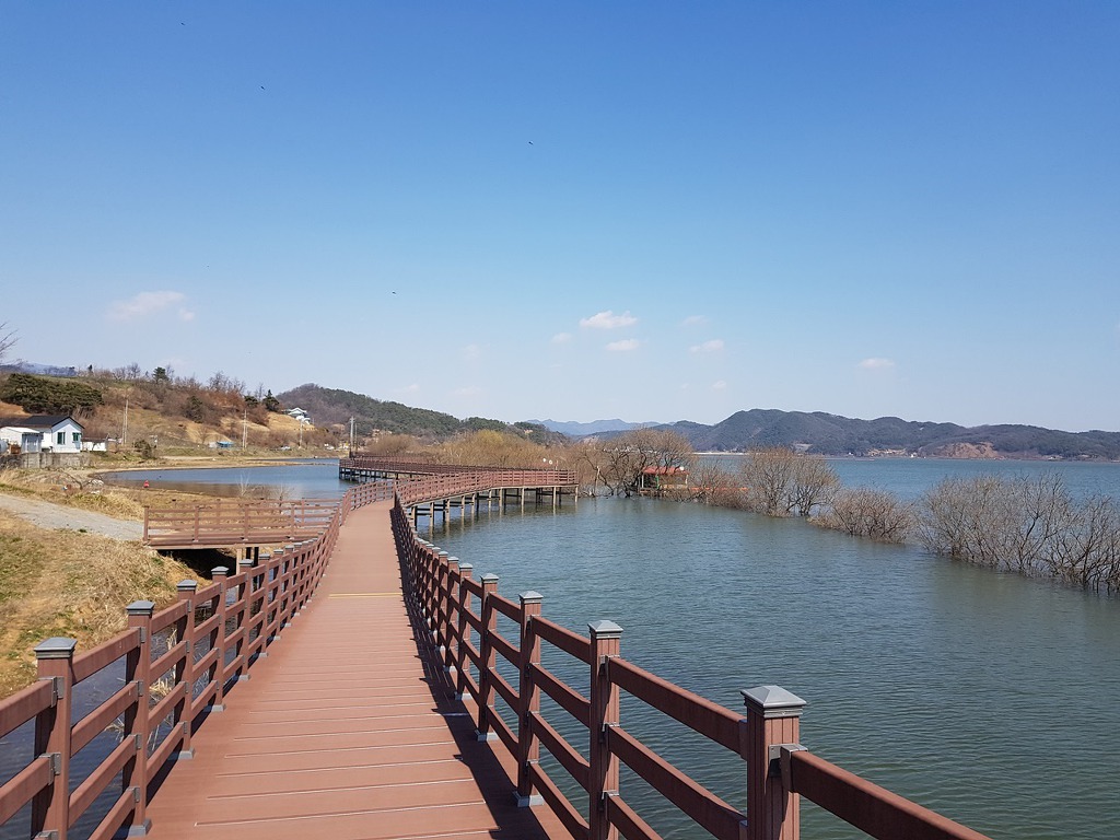 예당호에 나무테크길이 멋지게 이어지니 진행하기 좋고 아주 편안한길이 한동안 이어진다.