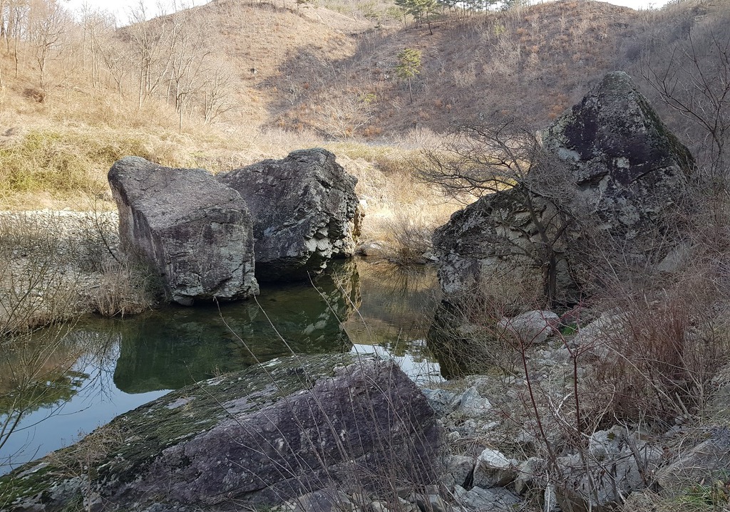 호남정맥 소반바위산에서 흘러온 운월천이 탐진강에 합류하는곳