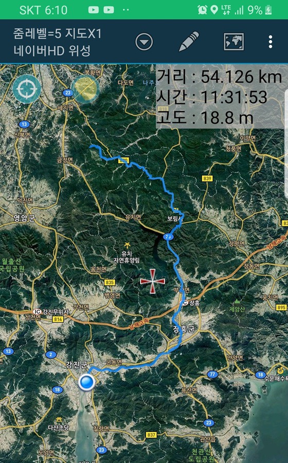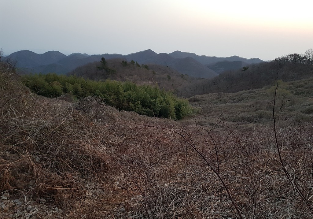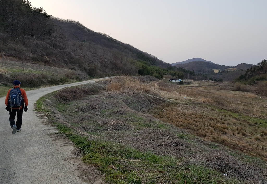 미리 예약해둔 택시로 호남정맥(장흥군 유치면 430봉)에서 분기해서 해남 송지면 사자바위 아래인 땅끝으로 이어지는 지맥길 궁성산 임도까지(전남 영암군 금정면 세류리)까지 쉽게 올라간다.