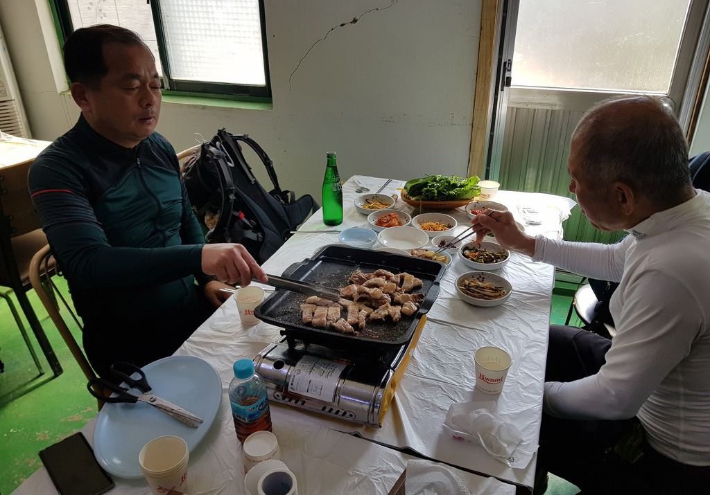 자전거로 먼저 내려와 고기 굽고 기다리신 지음님