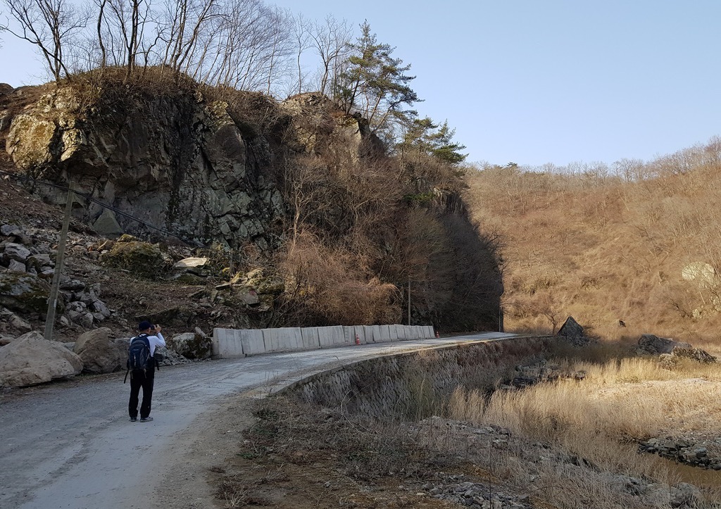 제방과 도로 공사중이라 대형트럭이 연신 오고 가는데
