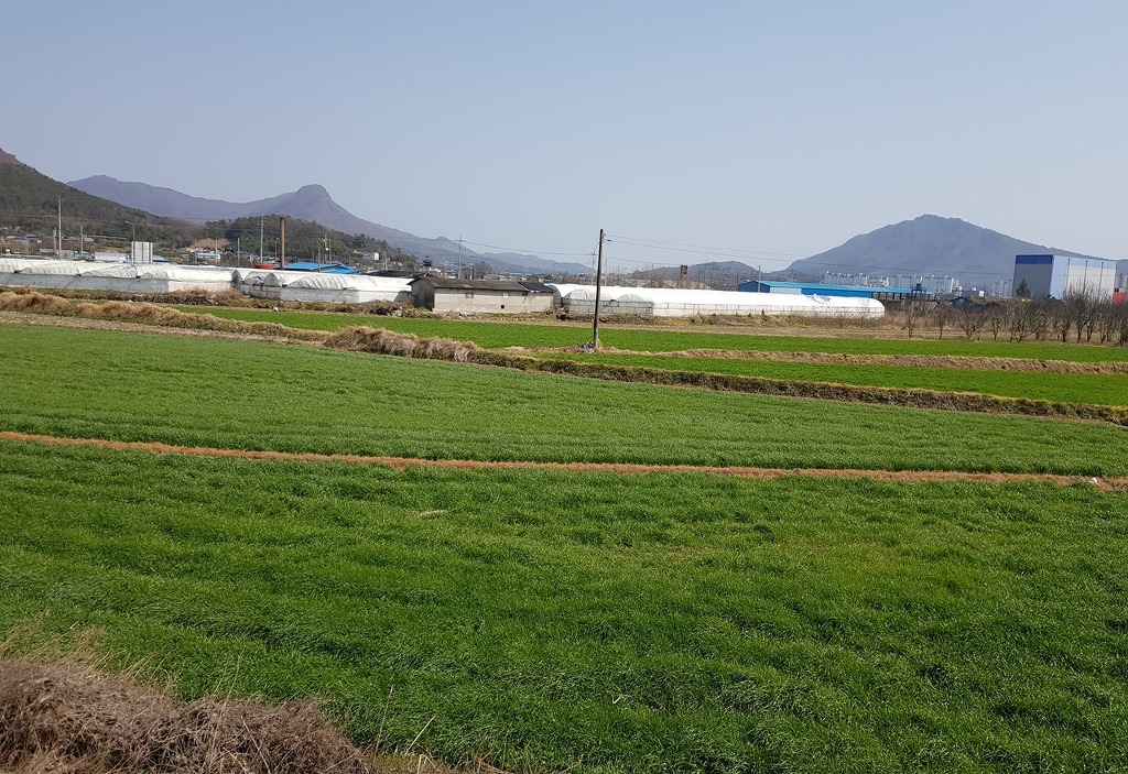 푸르른 보리밭 넘어 농부님들은 아직 보이지 않고 먼발치에서 보는 경치에 발길이 떨어지지 않는다.
