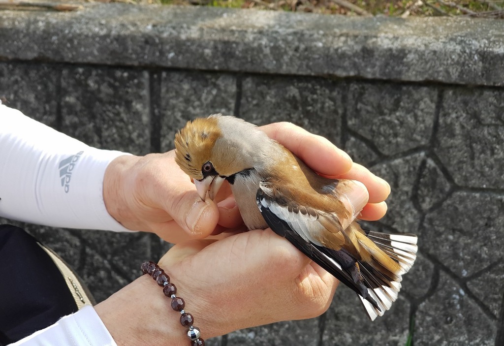 집에서 키우던 새인지 잘 날지 못하는걸 길가 나무 밑에 다시 놓아두고
