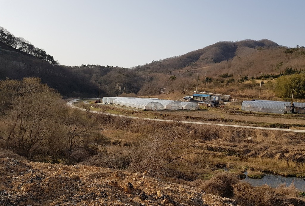장흥군 유치면 어느 마을을 지나며 검은색 비닐 하우스안에는 고만 고만한 참나무에 표고 버섯이 자란다.