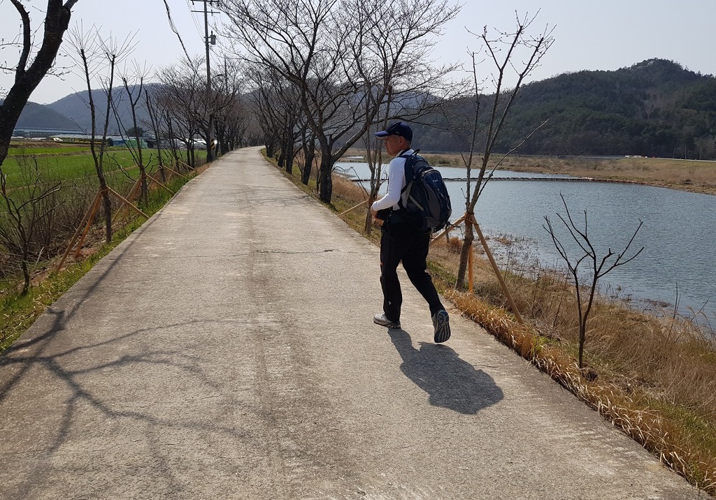 안전한 강길인 이곳 탐진강에 미리 오셔서 걸어 주시는 노송할배님