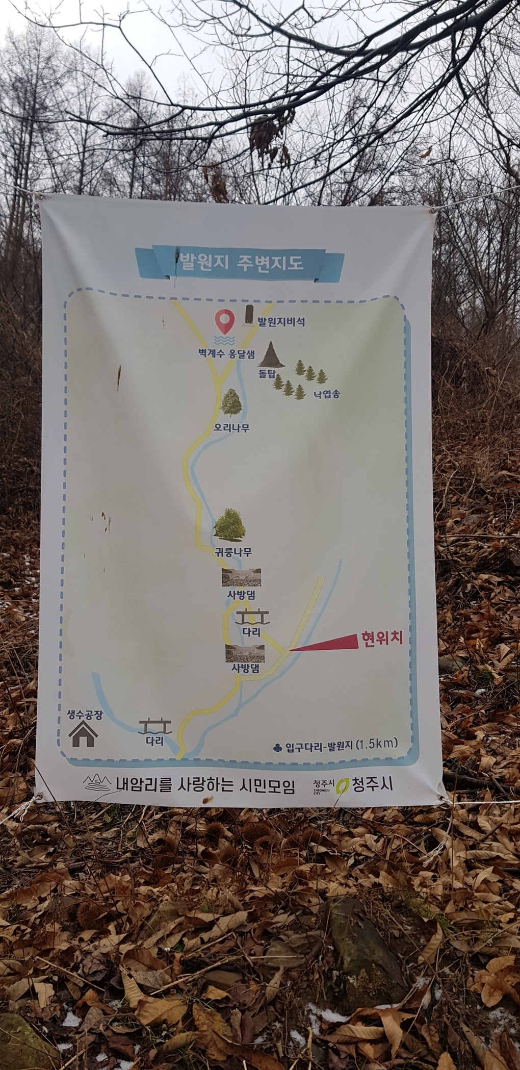 내암리 마을에서 무심천 발원지 비석을 만들어둔 벽계수 옹달샘으로 올라 가보고 싶었지만