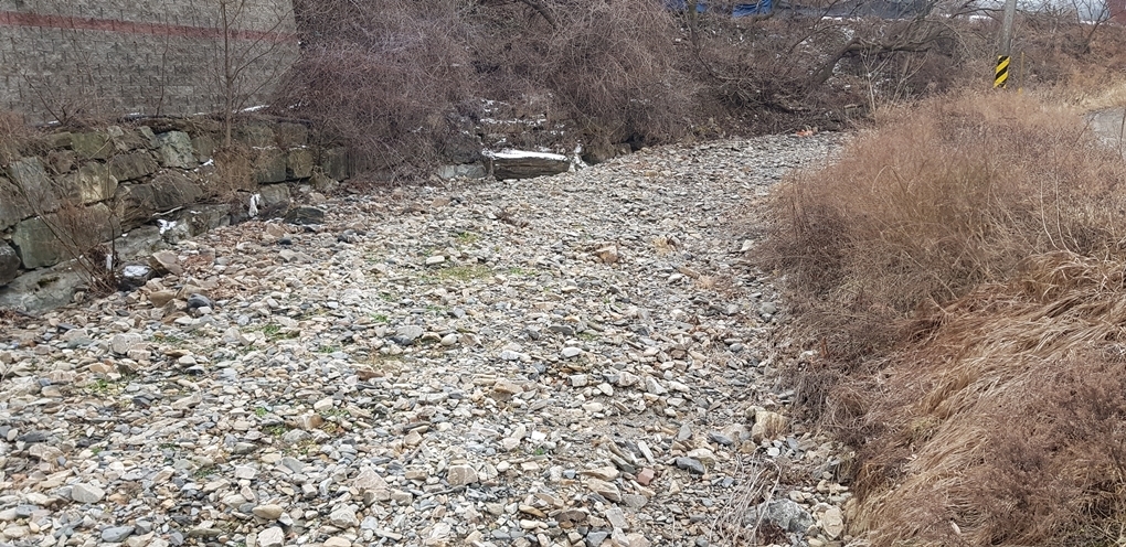 진로 석수 공장을 내려오며 하천으로는 물이 전혀 없고