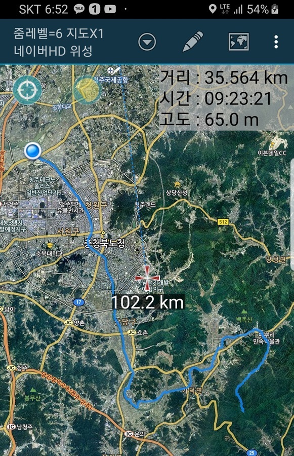 청주시 운전 면허 시험장을 크게 돌아서 진행