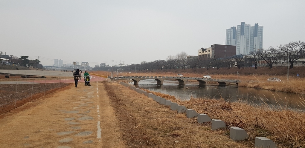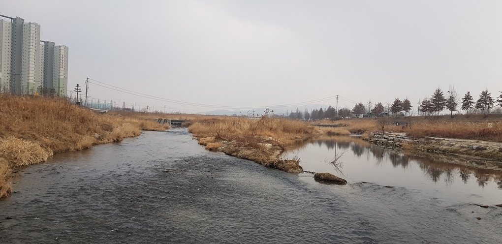 근래에 만든 수중보와 하천 정비를 해서 물은 나름 깨끗해 보이며