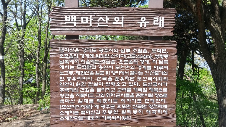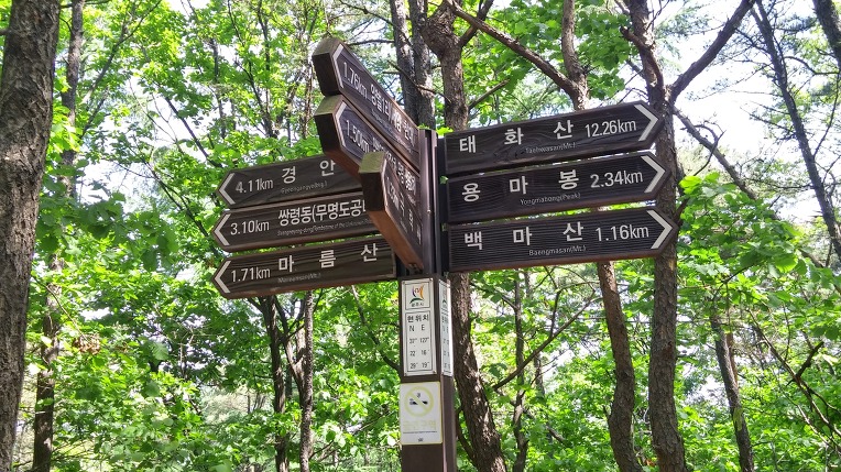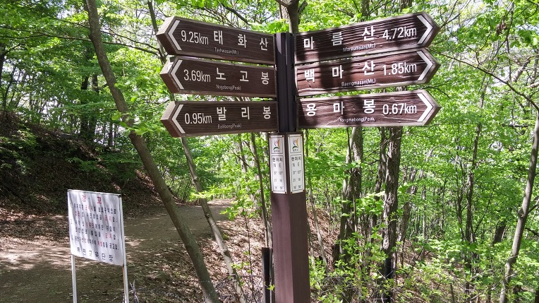 산행코스:오포양벌리 우림아파트~대주아파트~백마산(434m)~용마봉(502m)~발리봉(512m)~노고봉(578m)