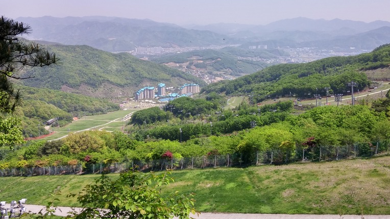 좌측능선으로 바라보이는 곤지암리조트 슬로프와 골프장~콘도
