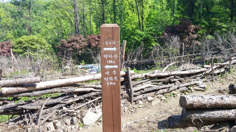 나타나는 삼거리에서 백마산은 우측등로 진입