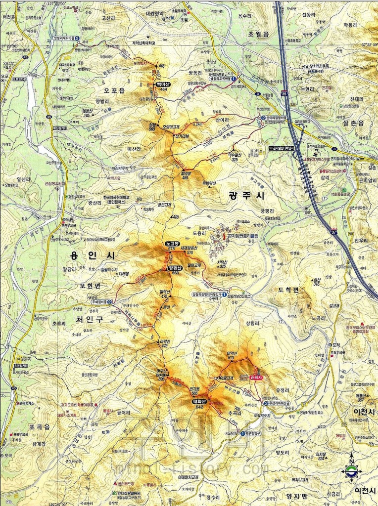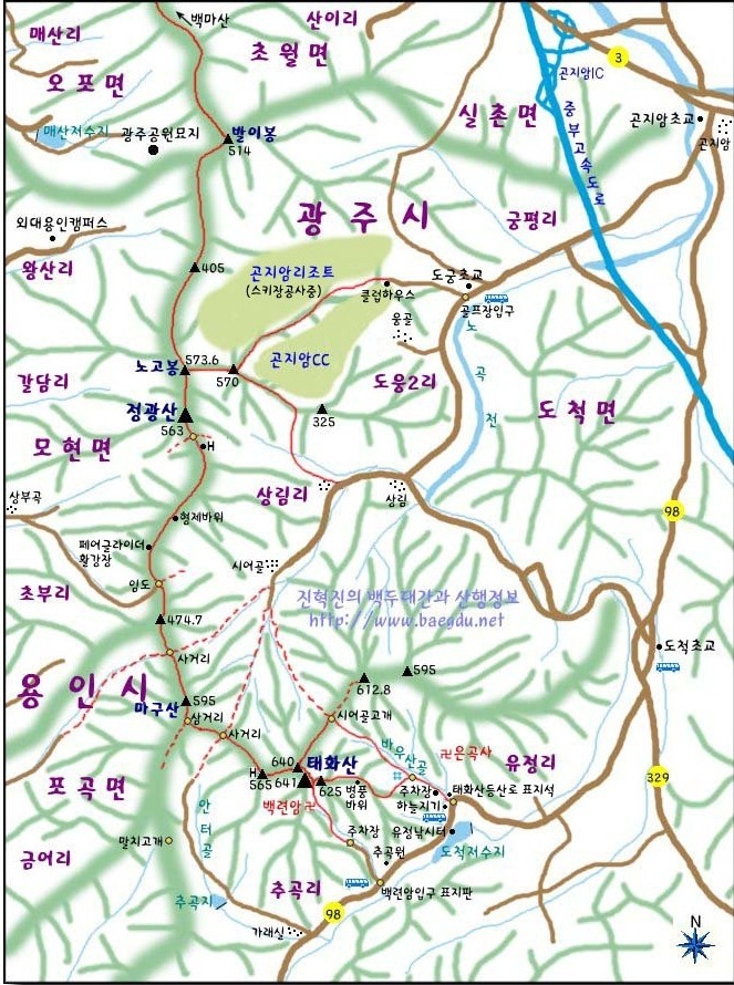 분당~수지~용인~~광주~곤지암에서도 대중교통으로 들머리에 접근성양호